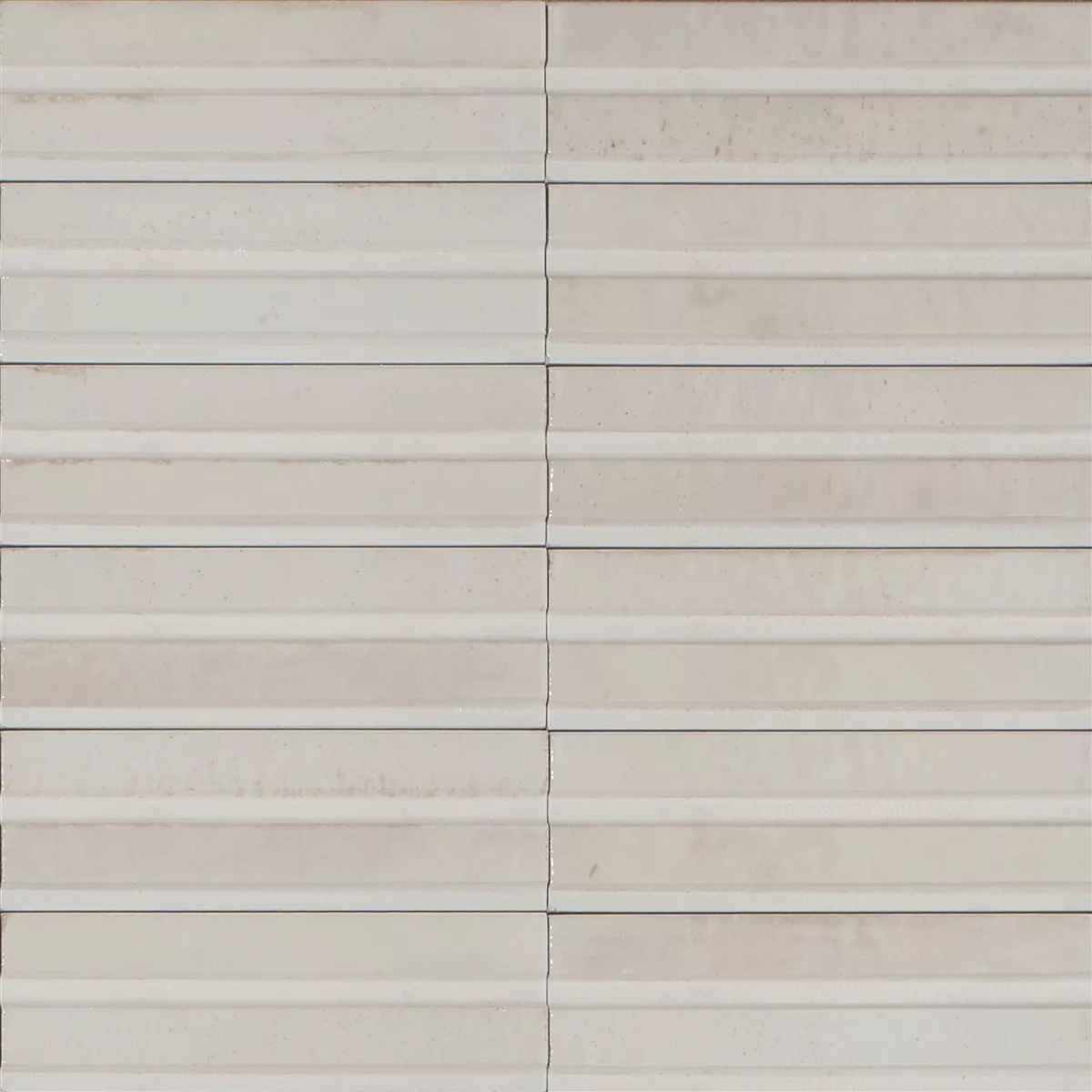 In de kleur Bone past deze tegel in vrijwel elk interieur. Het glanzende oppervlak reflecteert licht en creëert een lichte en uitnodigende sfeer, terwijl het 3D-effect en de textuur van de tegels structuur en diepte aan de ruimte toevoegen.