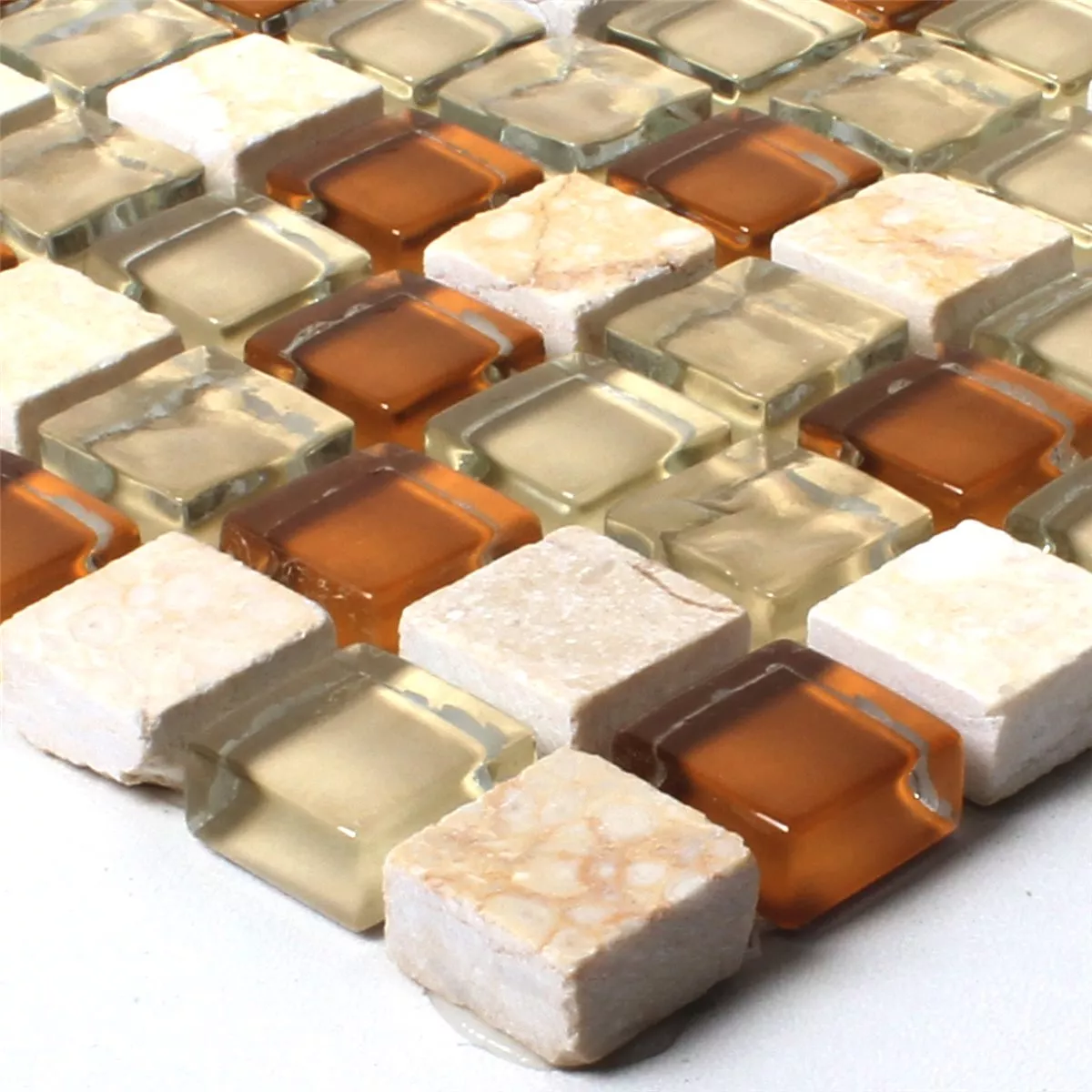 Sample Glas Natuursteen Marmer Mozaïektegel Davos Bruin Beige