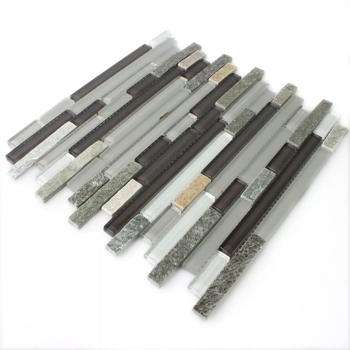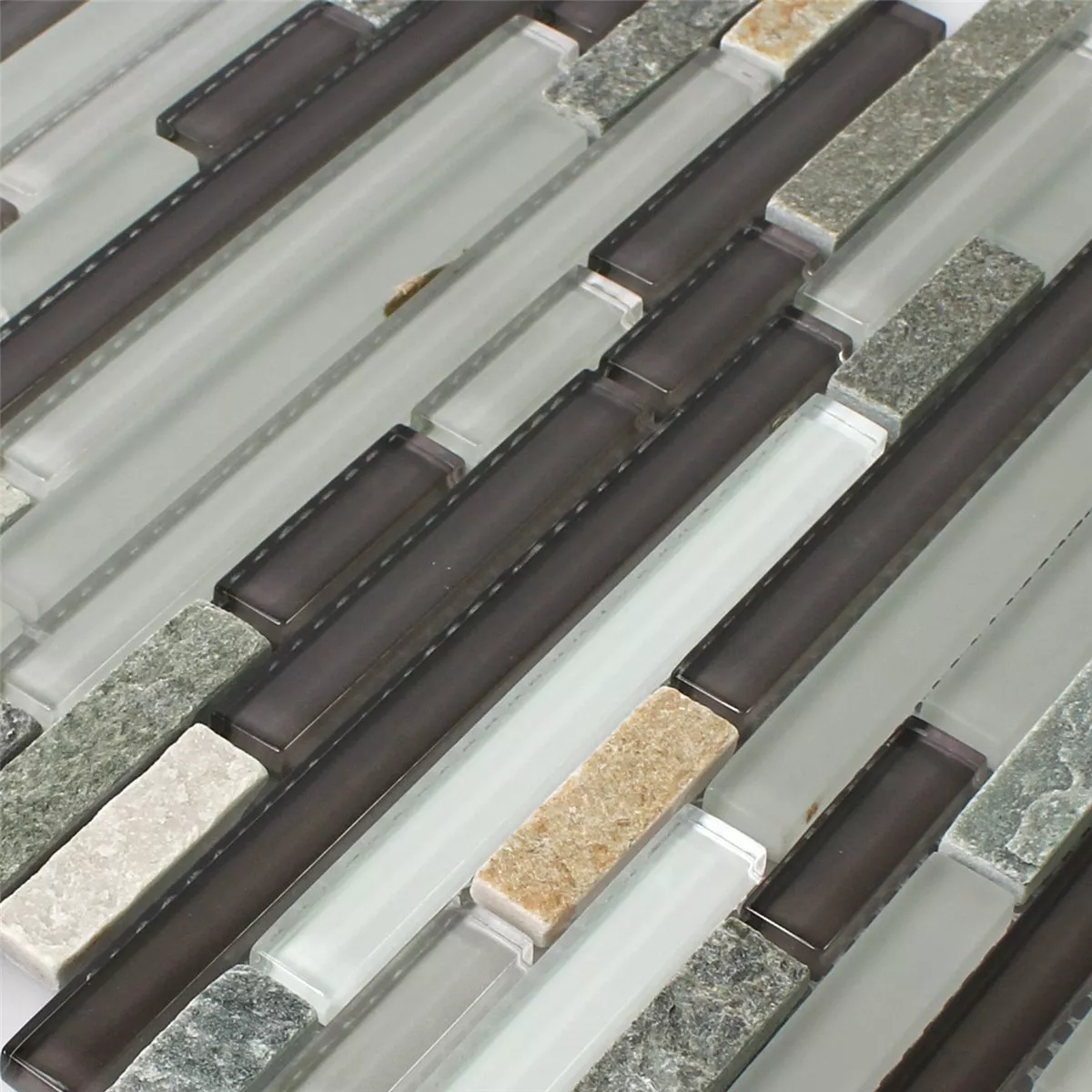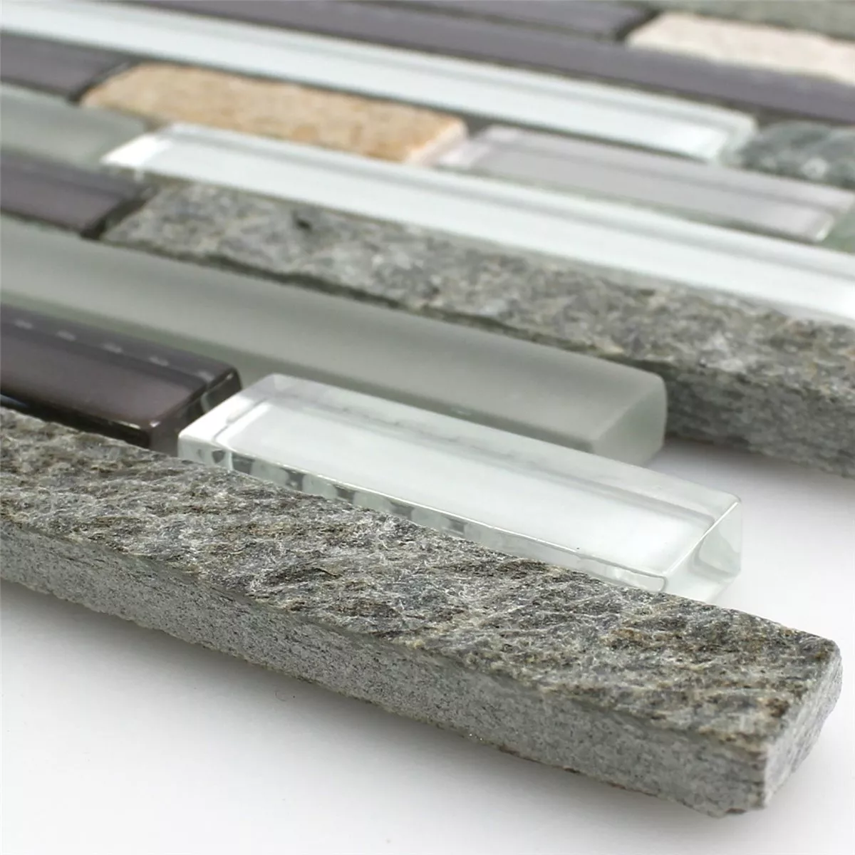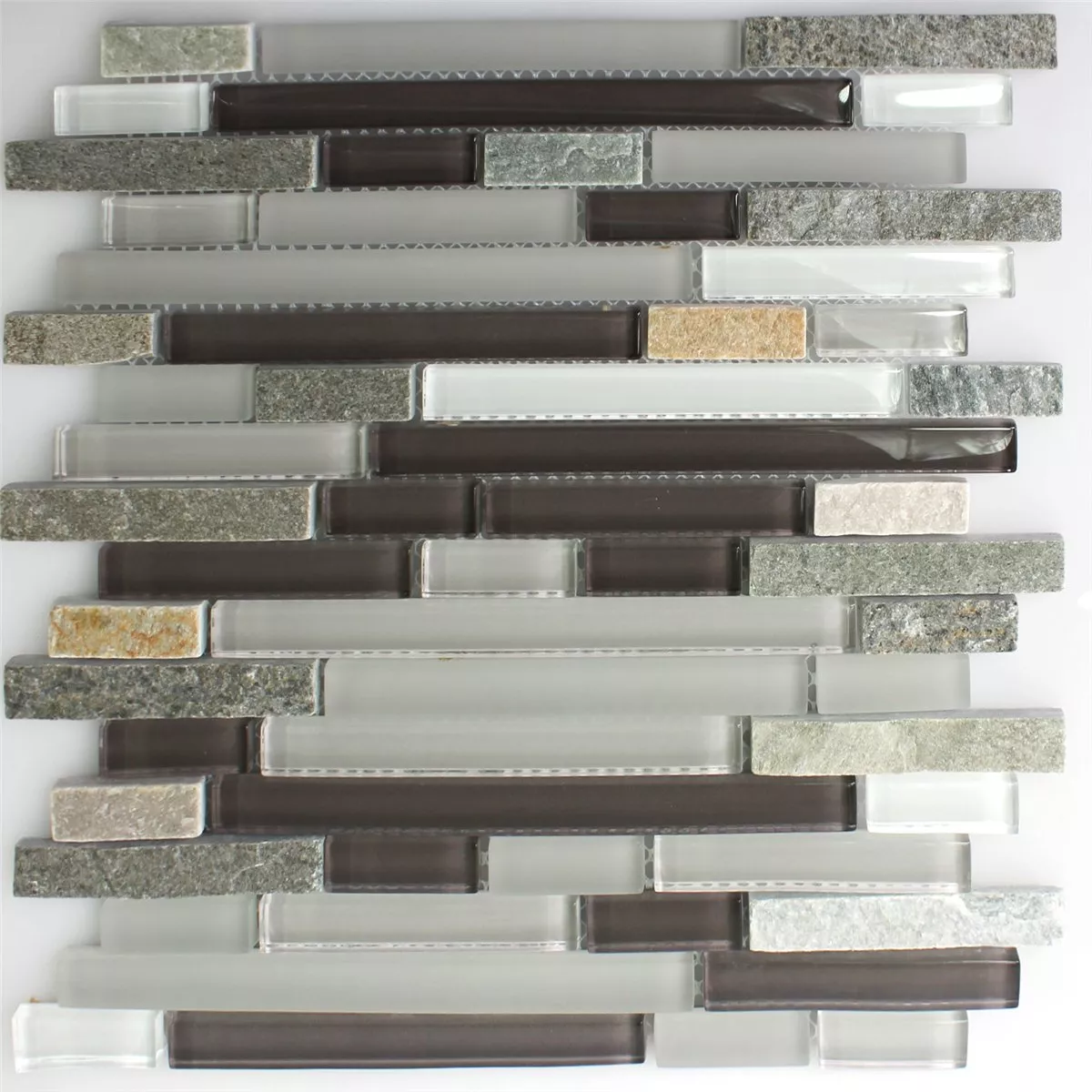 Sample Glas Natuursteen Mozaïektegel Vermont Grijs Bruin Pattern