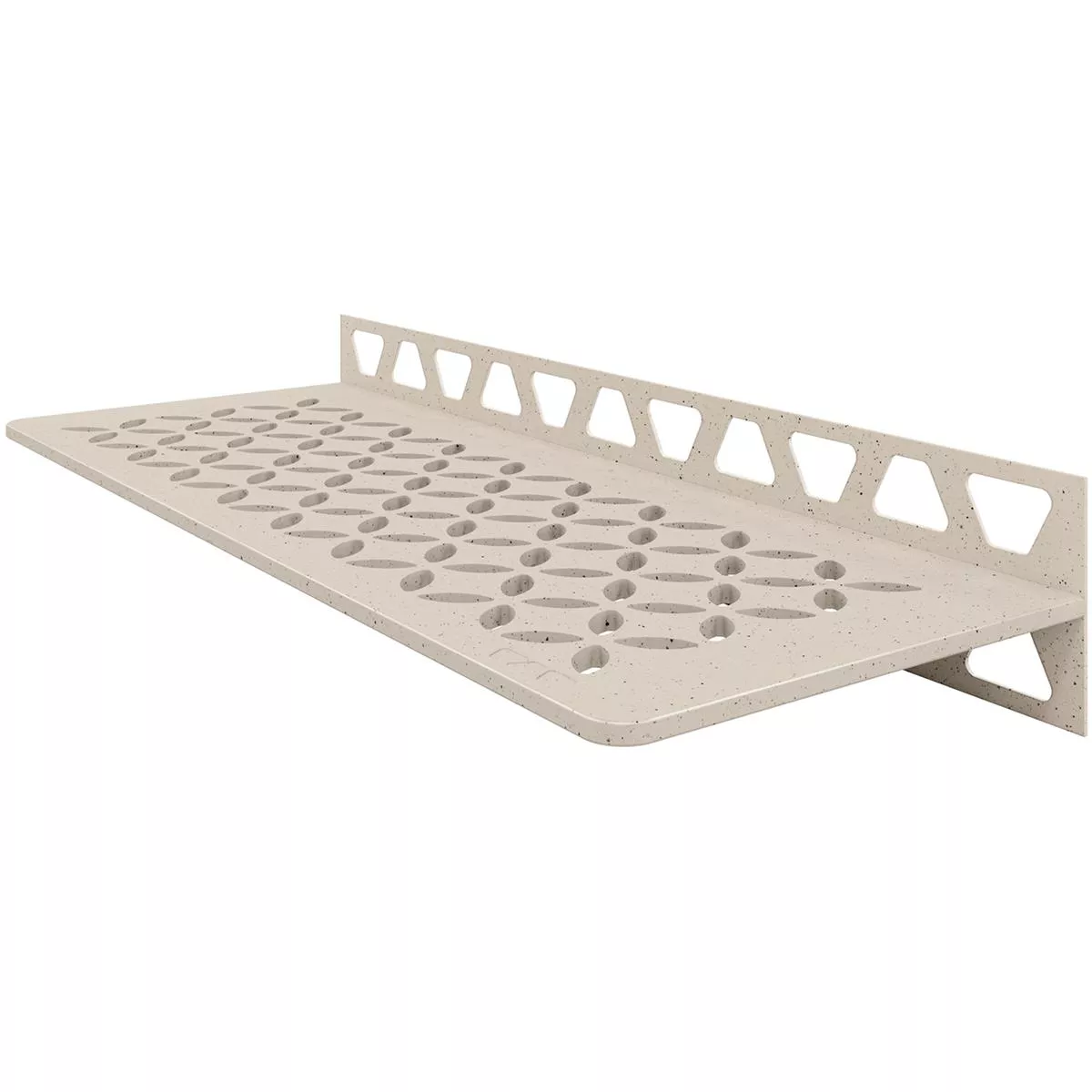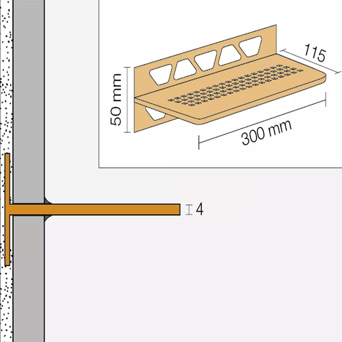 Rechthoekige wandplank Of het nu in de badkamer of in de keuken is: de rechthoekige plank Schlüter-SHELF-W kunt u overal in het vlakke wandgedeelte gebruiken waar u momenteel uw tegels legt. Dankzij de trapeziumvormige geperforeerde bevestigingspoten zijn de planken extreem stabiel en veerkrachtig, maar overtuigen ze tegelijkertijd door hun moderne uitstraling. U kunt niet alleen kiezen uit vijf aantrekkelijke designs, maar ook tussen geborsteld roestvrij staal en aluminium, waarvan deze laatste hoogwaardig is gepoedercoat in een populaire TRENDLINE-kleur of een MyDesign RAL-kleur.