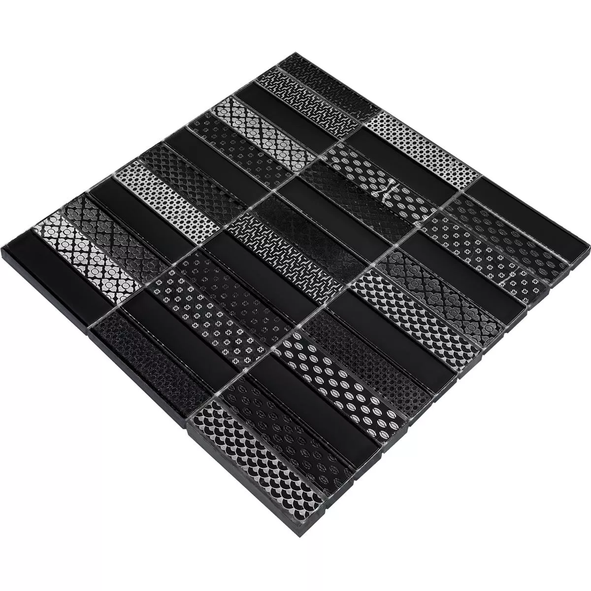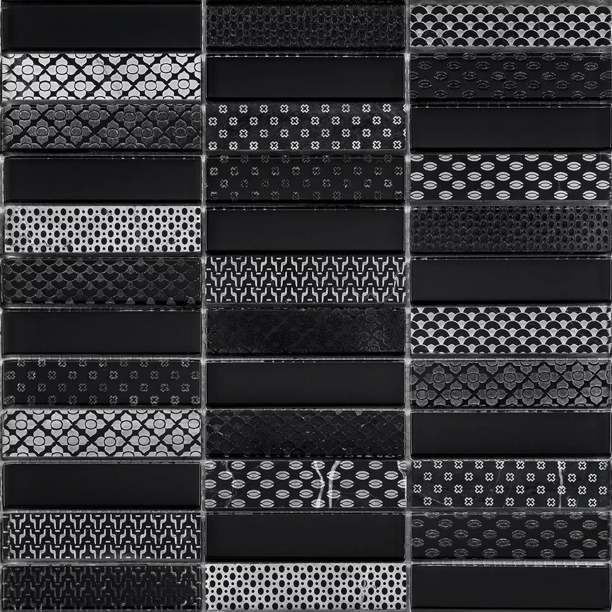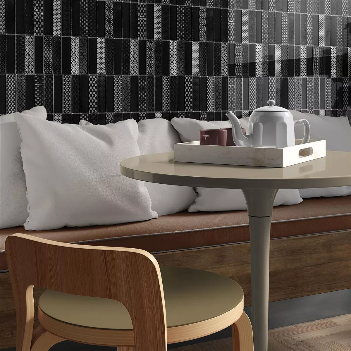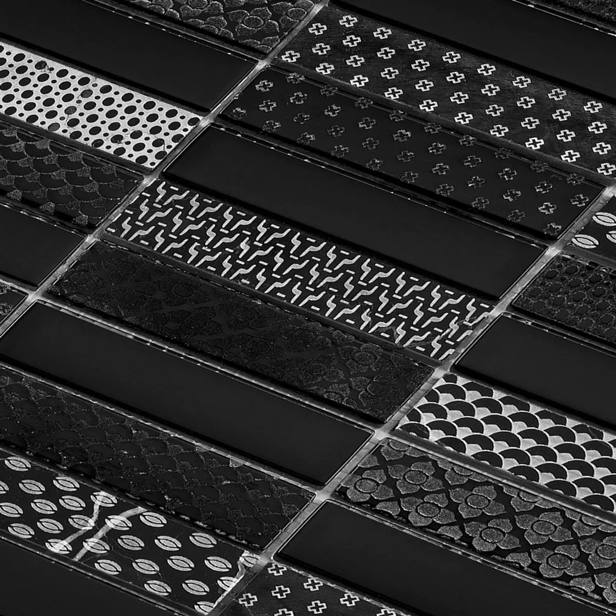 Glazen natuursteenmozaïektegels Celestiana Ornament Brick Mix Black Mix - elegantie in donkere verfijning.