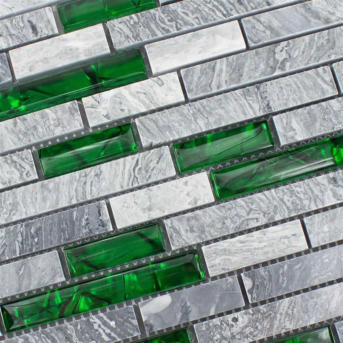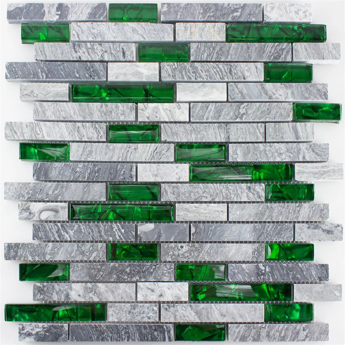 Glas Natuursteen Mozaïek Tegels Sinop Grijs Groen Brick