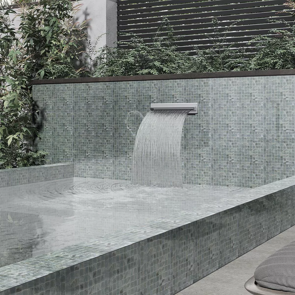 De grijze zwembadmozaïektegel Alassio combineert tijdloze elegantie met robuuste eigenschappen en is ideaal voor een breed scala aan ontwerpmogelijkheden. Met een matmaat van 31,6 x 31,6 cm en een dikte van 4 mm is deze mozaïektegel geschikt voor zowel muren als vloeren. Hij is gemaakt van hoogwaardig glas en eco-glas, wat een glanzende natuursteenlook biedt en elke kamer een moderne en elegante uitstraling geeft.