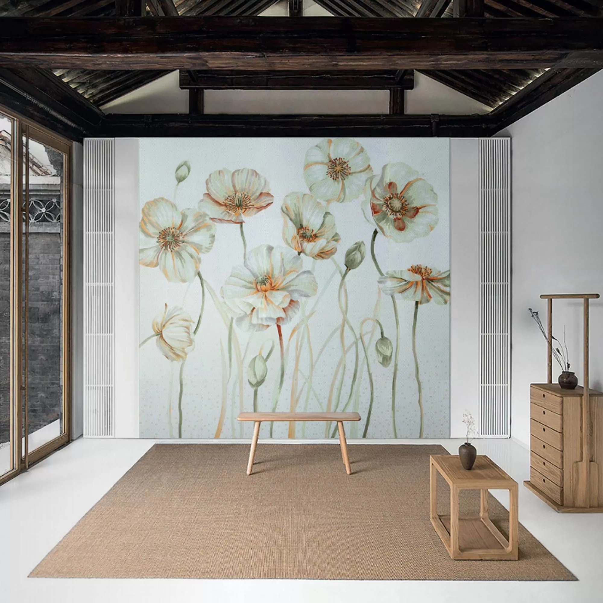 Glasmozaïek Beeld White Poppy 90x240cm