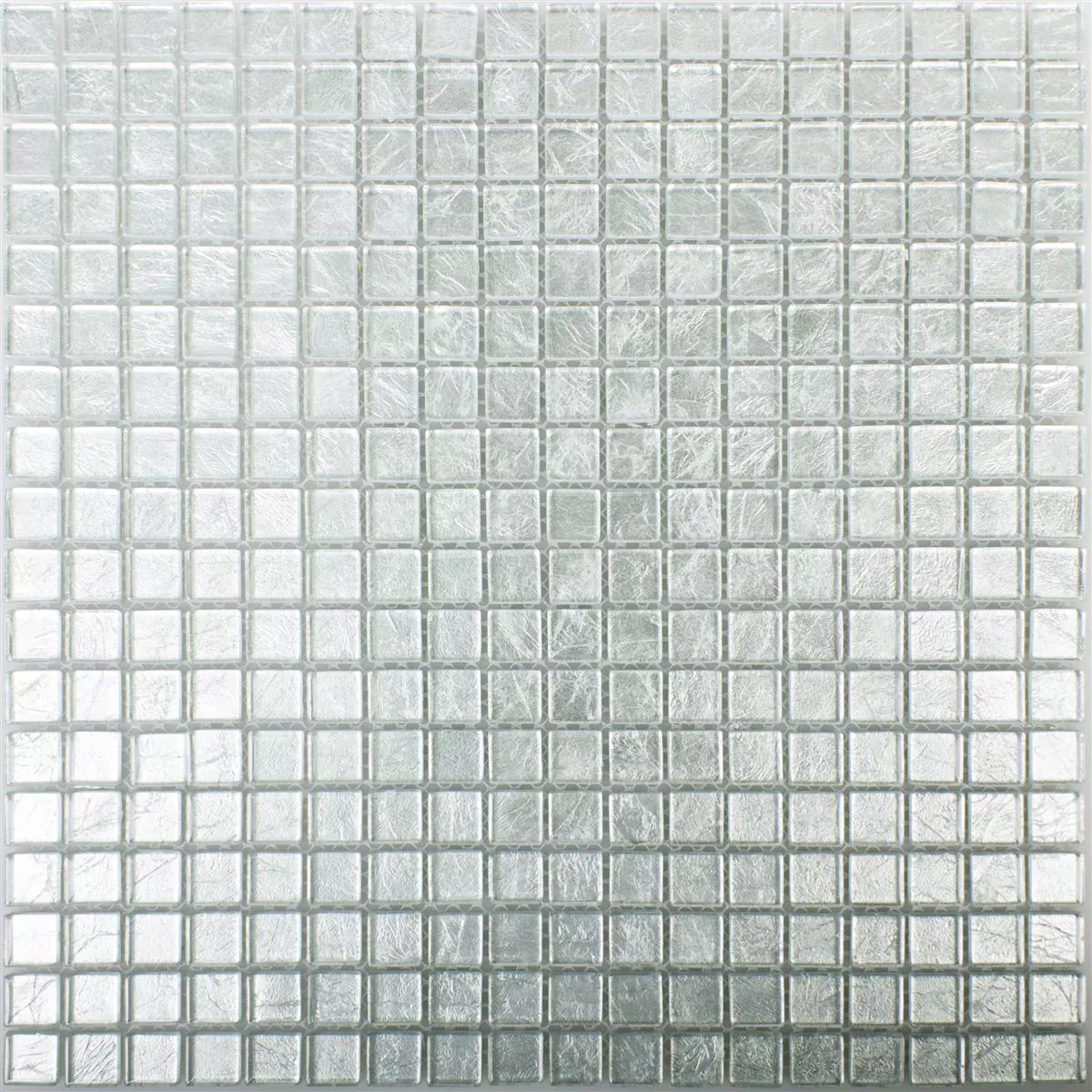 Eigenschappen van de Capone glasmozaïek serie De steenmaat van de Capone glasmozaïek tegel is 15x15mm. Het oppervlak van de stenen is glanzend. De glasmozaïek tegel Capone wordt geleverd als mat met een matmaat van 30x30cm. De stenen zijn gemaakt van glas met een dikte van 4mm. Een mat van stenen komt overeen met een oppervlakte van 0,090m². Kleurvarianten van de Capone glasmozaïek serie De Capone glasmozaïek is zilver van kleur.