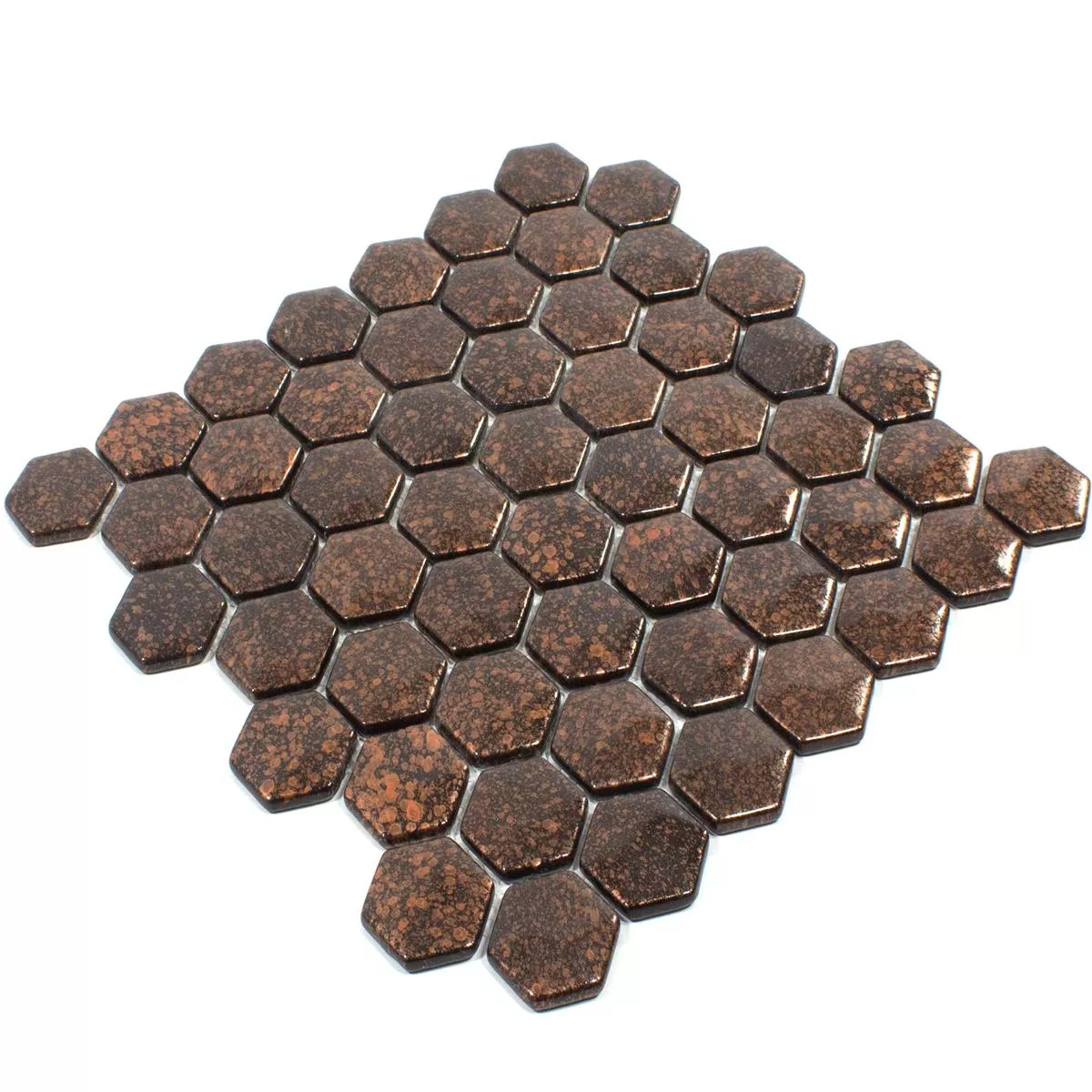 Glasmozaïek Tegels Leopard Hexagon 3D Bronzen