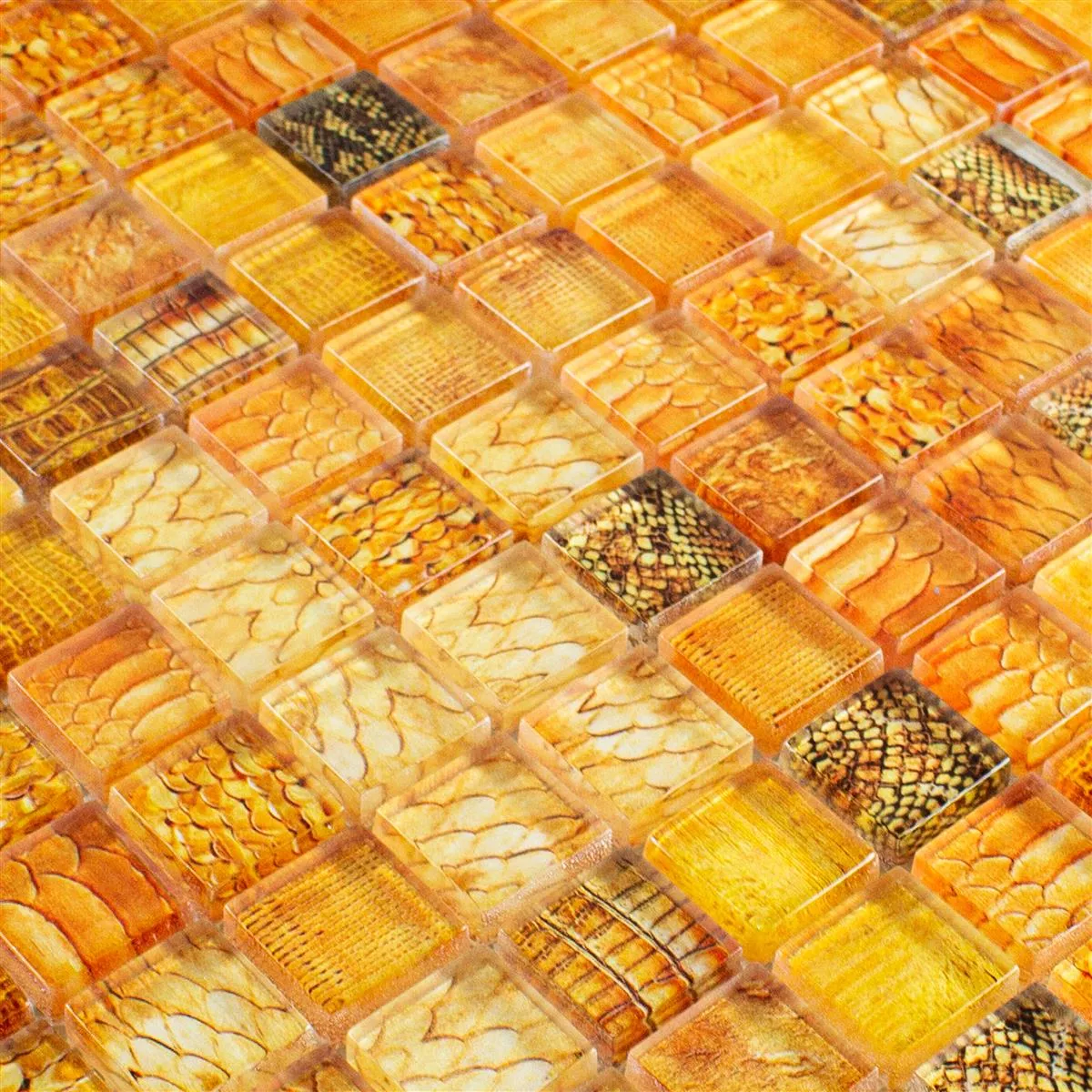 De glasmozaïektegels “Python” in levendig oranje brengen dynamische energie en een vleugje exclusiviteit in uw wandontwerp. Met hun glanzende oppervlak en hoogwaardige glasstenen bieden deze mozaïektegels een kleurrijke en onderhoudsvriendelijke oplossing voor elke muur.