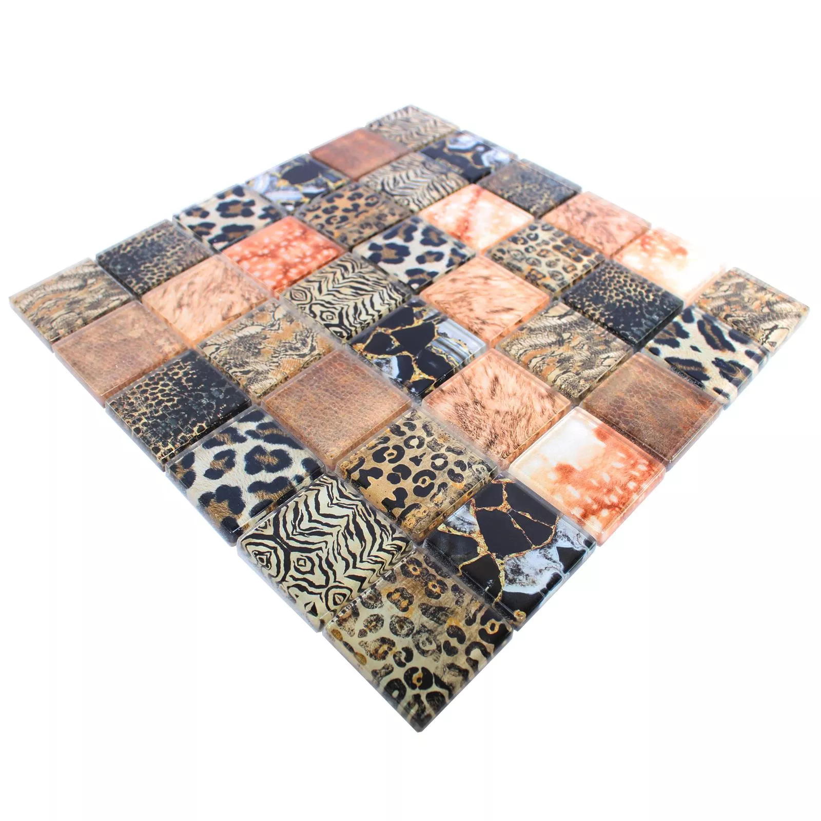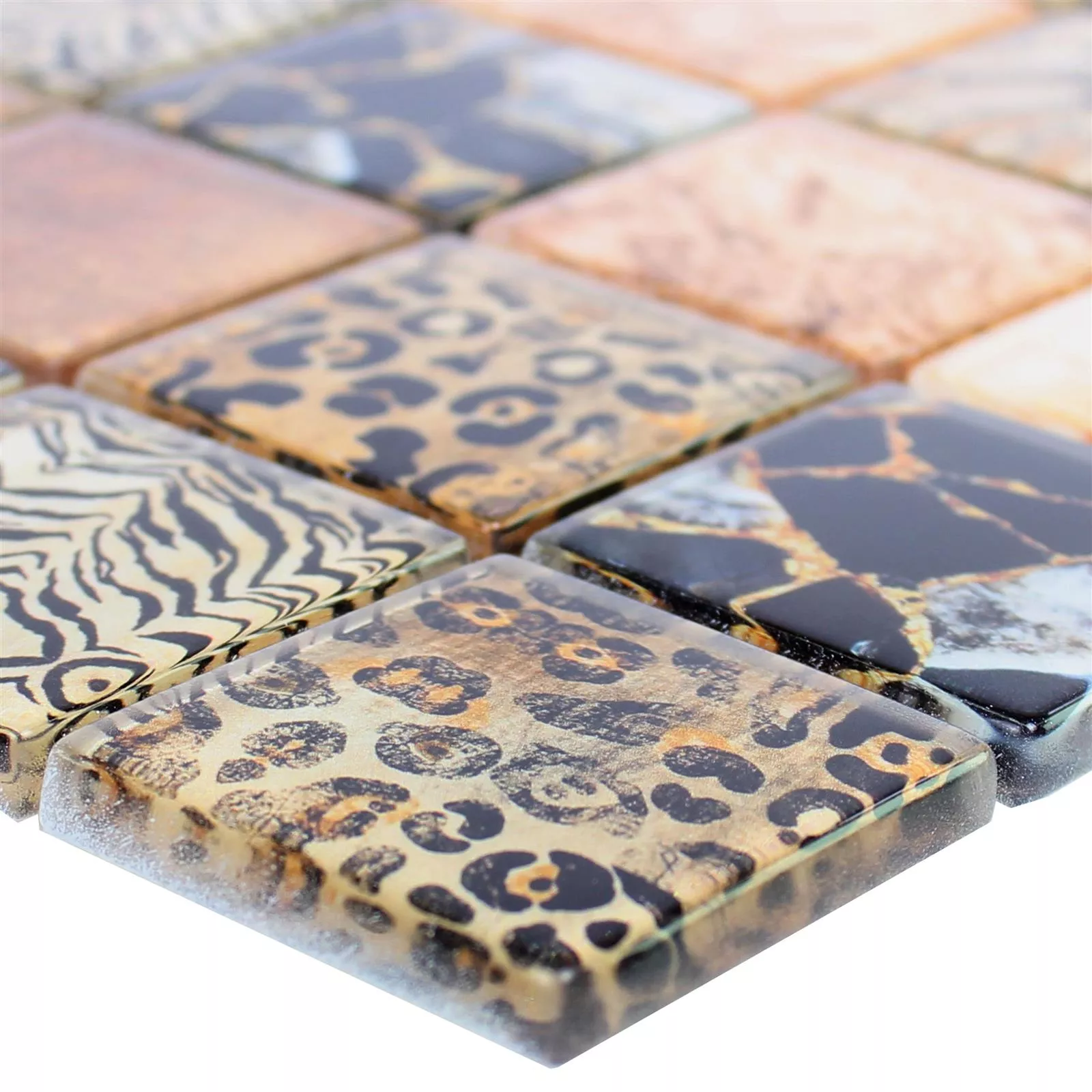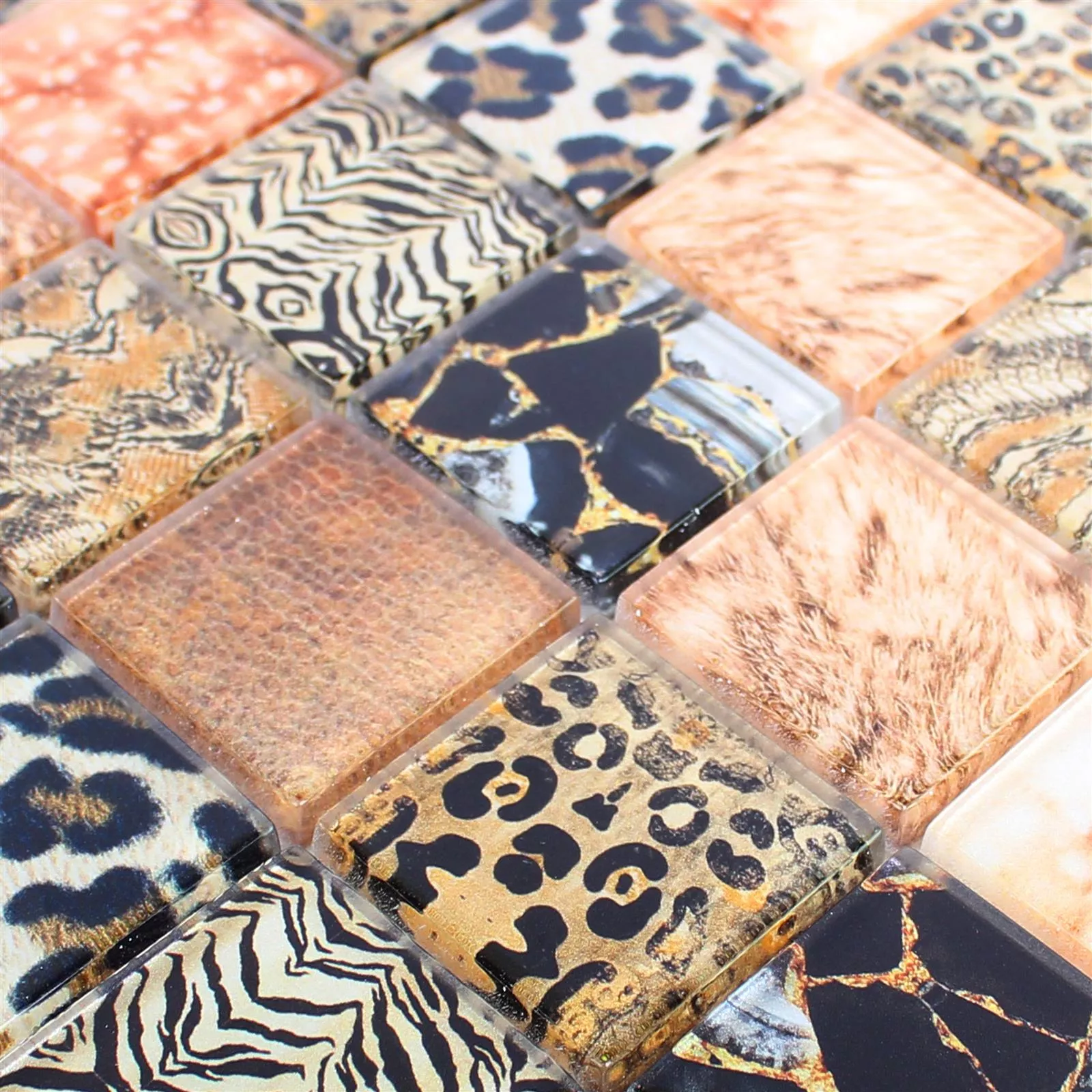 De glasmozaïektegel Safari inspireert met zijn ongewone mix van patronen. Ze kunnen op verschillende manieren worden gebruikt voor de unieke vormgeving van openbare gebouwen, bedrijfsruimten en woonruimtes van muren binnenshuis. Door de individuele lichtbreking komen de schitterende kleuren van de tegels goed tot hun recht.