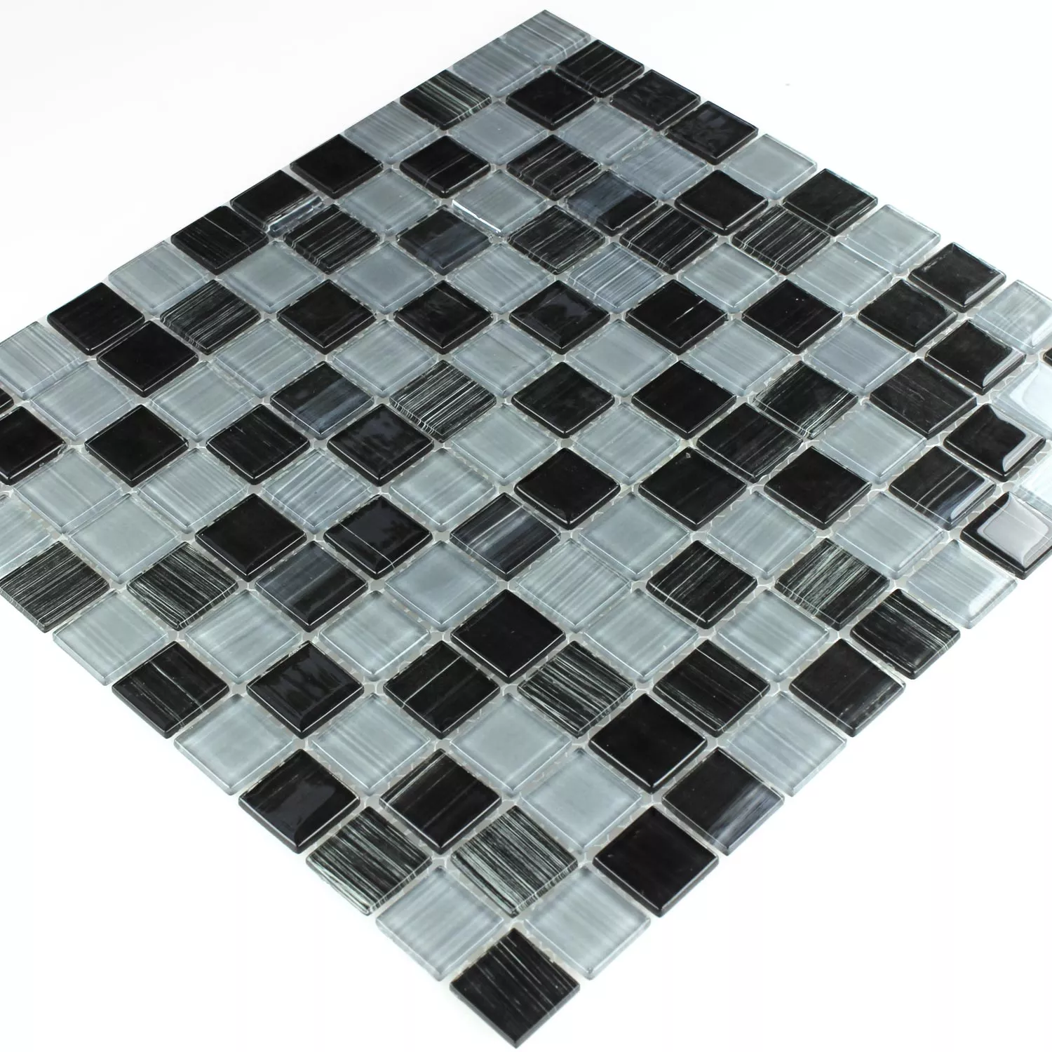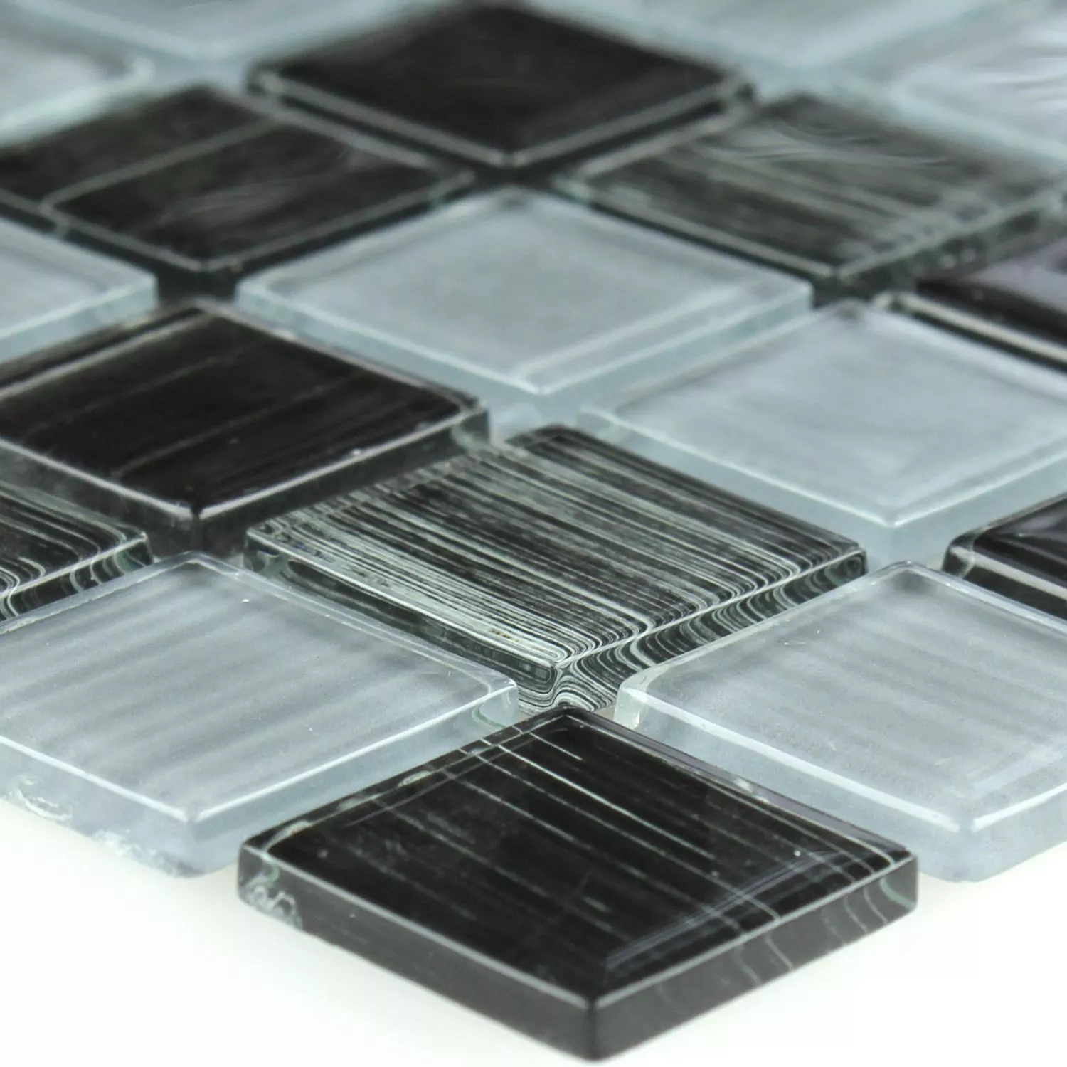 Glasmozaïek Tegels Lafayette Zwart Grijs Gestreept