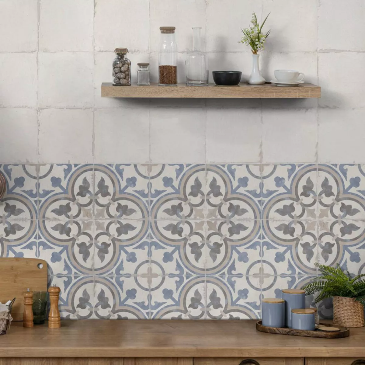 Deze porseleinen tegel onderscheidt zich door zijn aantrekkelijke kleurenpalet, met onder andere blauw, bruin en crème, en past prachtig bij diverse interieurstijlen. Het oppervlak heeft een matte, gestructureerde afwerking, wat de tegel een aangenaam gevoel en een aantrekkelijke uitstraling geeft. Dankzij zijn speciale eigenschappen is deze tegel antislip, waterdicht en vorstbestendig.