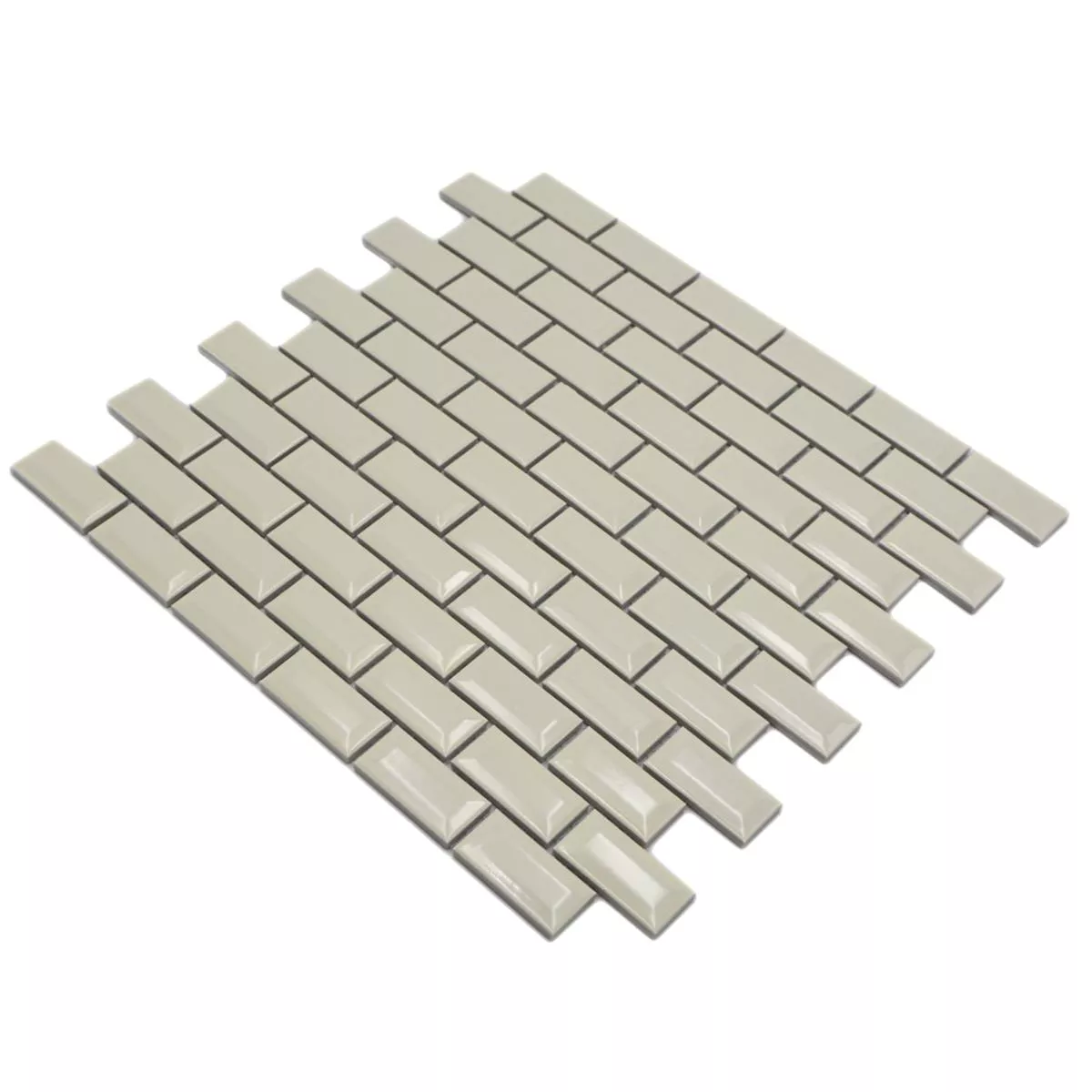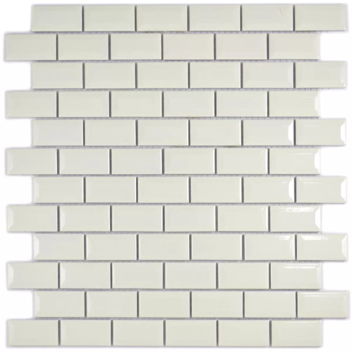 Keramiek Metro Mozaïektegel Baltimore Met Facet Ivoor Glanzend