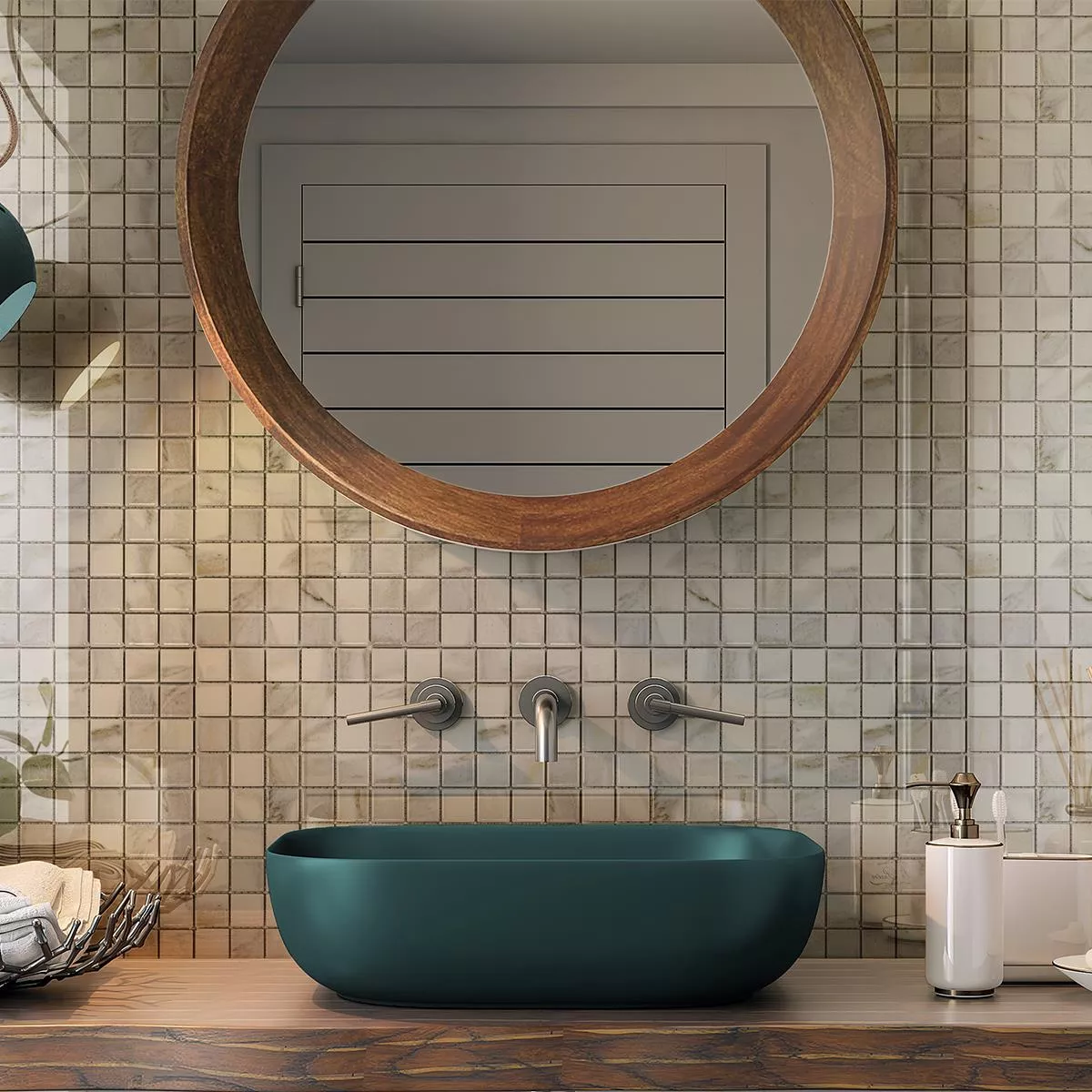 De Elysium-mozaïektegel in het wit combineert functionaliteit en esthetische eisen op een bijzondere manier. Met een afmeting van 29,7 x 29,7 cm per mat bestrijkt elke tegelmat een oppervlakte van 0,088 m². De individuele mozaïekstenen hebben een afmeting van 23 x 23 mm en zijn klaar voor installatie op een stevig net gelijmd, wat de installatie eenvoudiger maakt en tijd bespaart.
