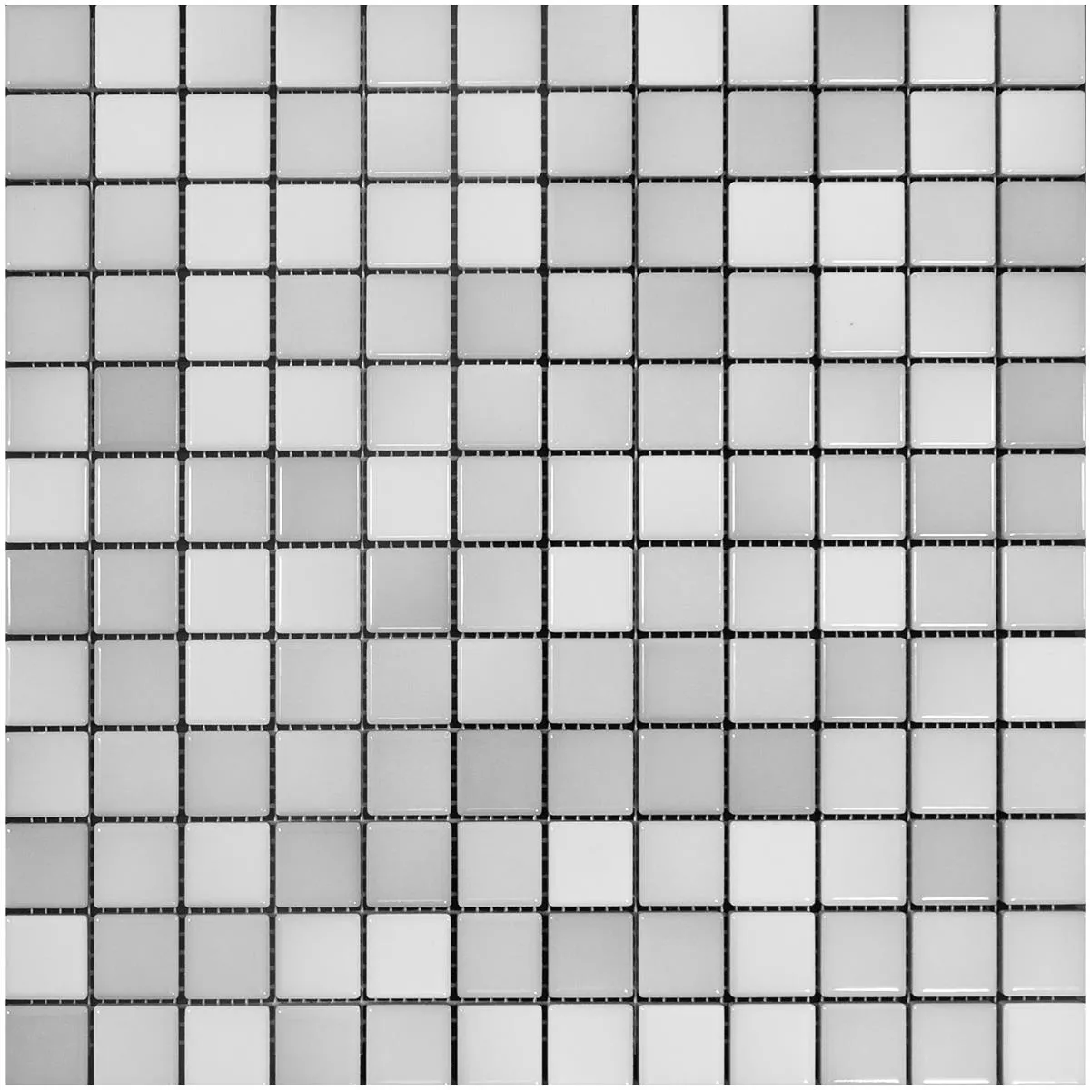 De keramische mozaïektegel Galleria in de zilvergrijze mix brengt met zijn elegante metaallook en matte oppervlak een moderne, glinsterende elegantie in elke kamer. De tegel wordt geleverd op een mat van 29,7 x 29,7 cm en is al op een gaas verlijmd, klaar voor plaatsing, waardoor hij zowel op muren als op vloeren gemakkelijk te plaatsen is.