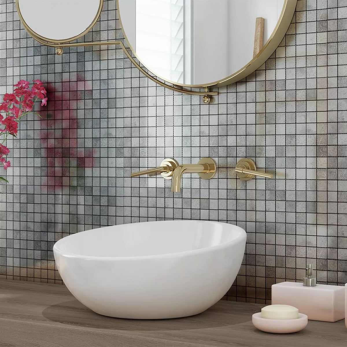 De keramische mozaïektegel Terraviva in elegant grijs geeft elke ruimte een moderne cementlook en brengt tegelijkertijd functionaliteit en stijl in uw kamers. De matte afwerking en het steenformaat van 23 x 23 mm zorgen voor een strakke en eigentijdse esthetiek. Met de praktische tegelmat van 29,7 x 29,7 cm, die al voor montage op een net is geplakt, is de montage op zowel muren als vloeren bijzonder eenvoudig en nauwkeurig.