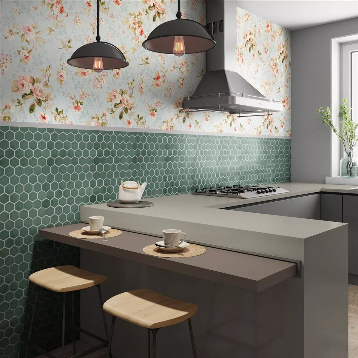 Keramiek Mozaïektegel Eldertown Hexagon Donkergroen