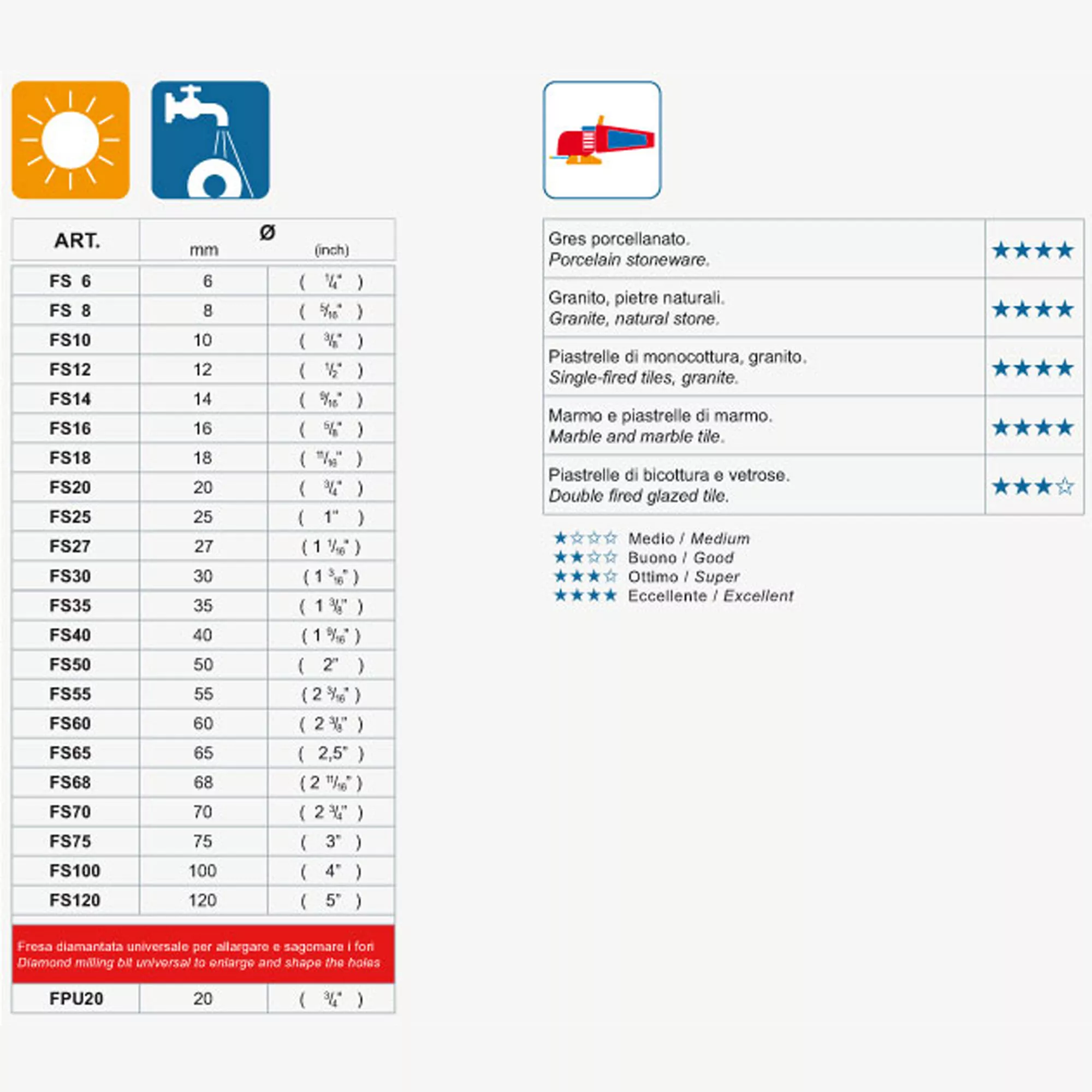 Met de diamantboorkroon heeft u veel mogelijkheden om een zeer goed gat te boren. Omdat diamant bekend staat als het sterkste mineraal ter wereld, heb je een zeer schone en precieze baan, die je op elk moment kunt identificeren met deze boor. Met de boormachine kunt u droogboren. Dit is heel eenvoudig en werkt altijd. Bovendien is het resultaat zeer precies en fijn. Ook kunt u met deze boor vele andere materialen bewerken. Daar hoort ook keramiek bij. Bij keramiek is het vaak zo dat het scheurt bij het boren en het hele object breekt. Dit is hier niet het geval. Met de boor heeft u altijd een mooi resultaat. Zelfs graniet, een zeer harde steen, kan gemakkelijk worden doorboord met de boor. Zo kunt u ervoor zorgen dat ook dit werk eenvoudig kan worden gedaan. Porseleinen aardewerk is ook gemakkelijk om mee te werken.
