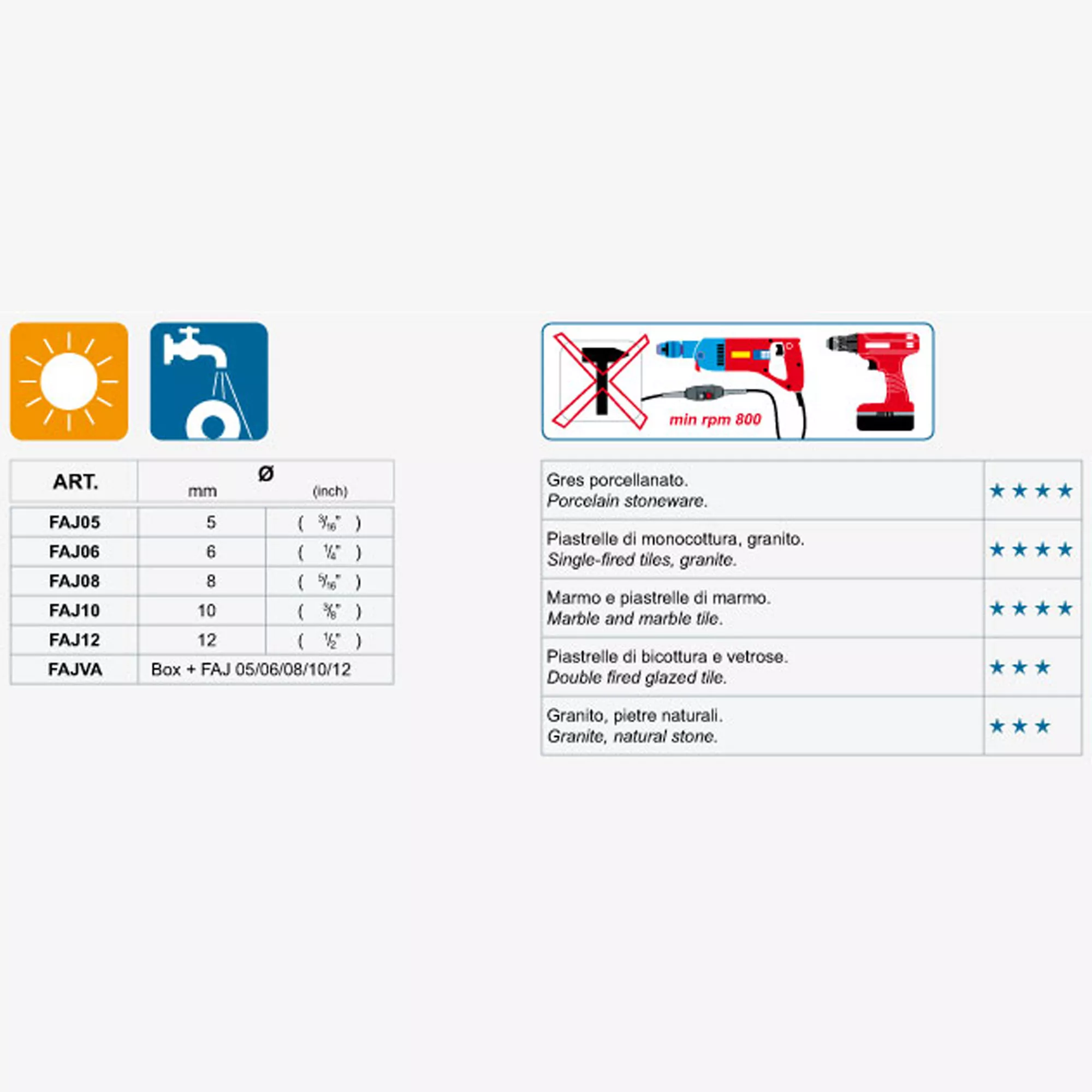 Het is belangrijk dat de boor minimaal 800 toeren per minuut haalt, zodat er een goed resultaat behaald kan worden met de diamantboor. Voor gebruik moeten de gebruiksaanwijzingen en instructies voor de boor en boor in acht worden genomen, zodat er bij het droogboren niets misgaat. Informatie over gebruik, beschikbaarheid en levertijden van het artikel kunt u opvragen bij de klantenservice. De in de onlineshop genoemde prijzen zijn eenheidsprijzen. De klantenservice is bereikbaar via de klantenhotline en helpt u graag verder als u vragen heeft.