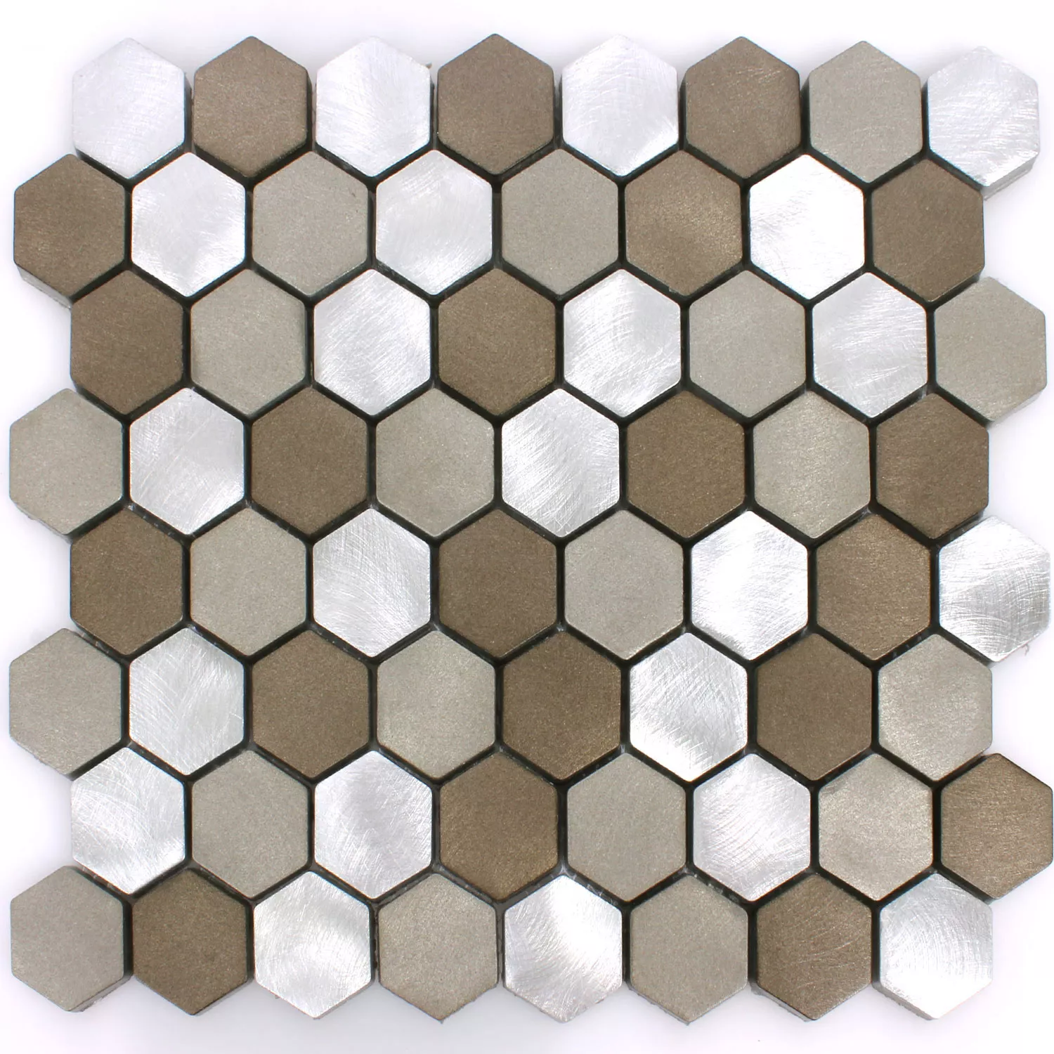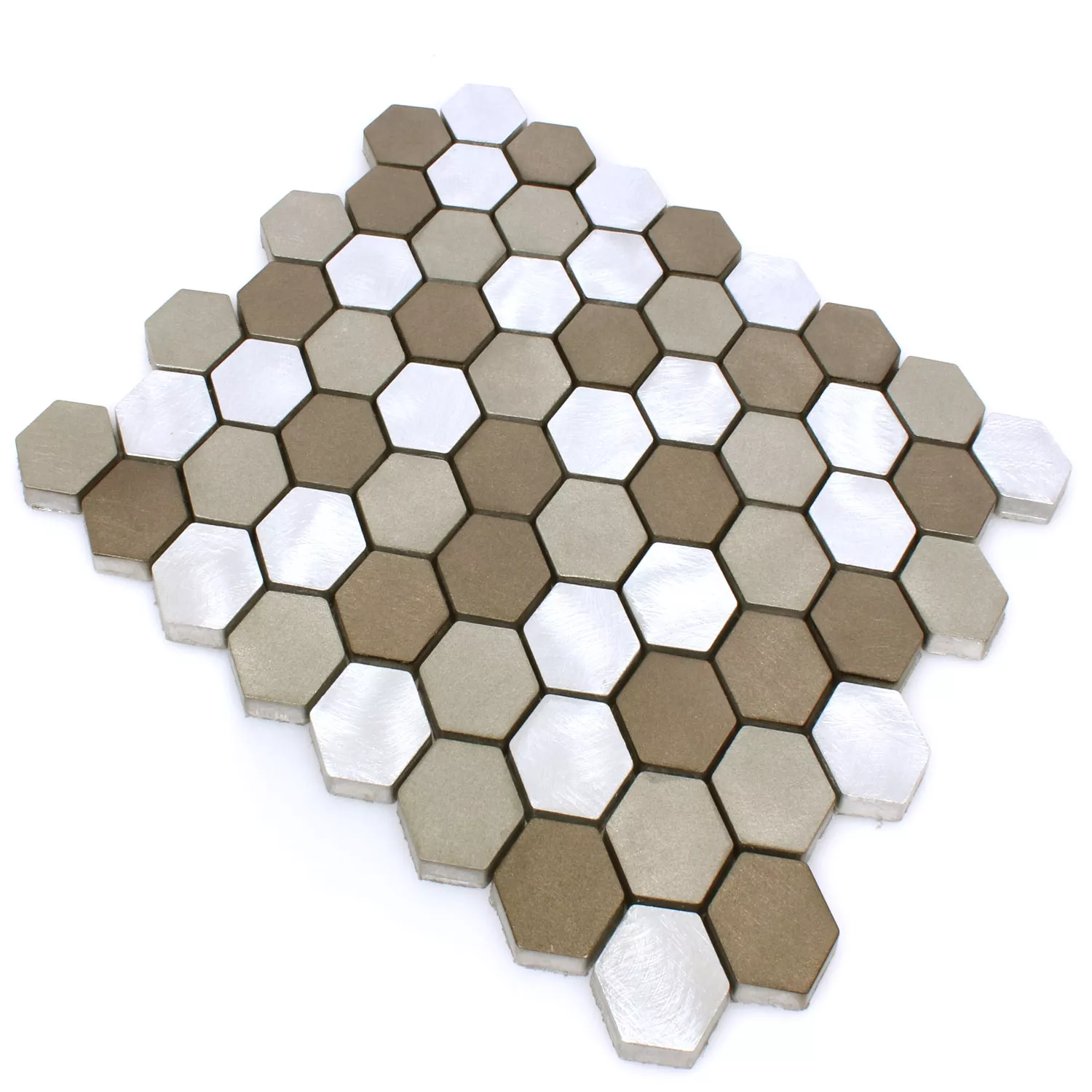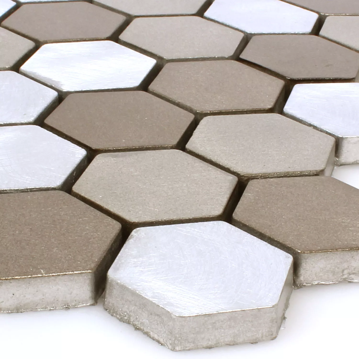 Mozaïektegel Aluminium Apache Hexagon Bruin Zilver