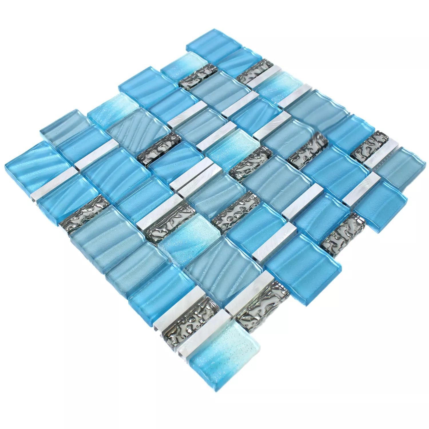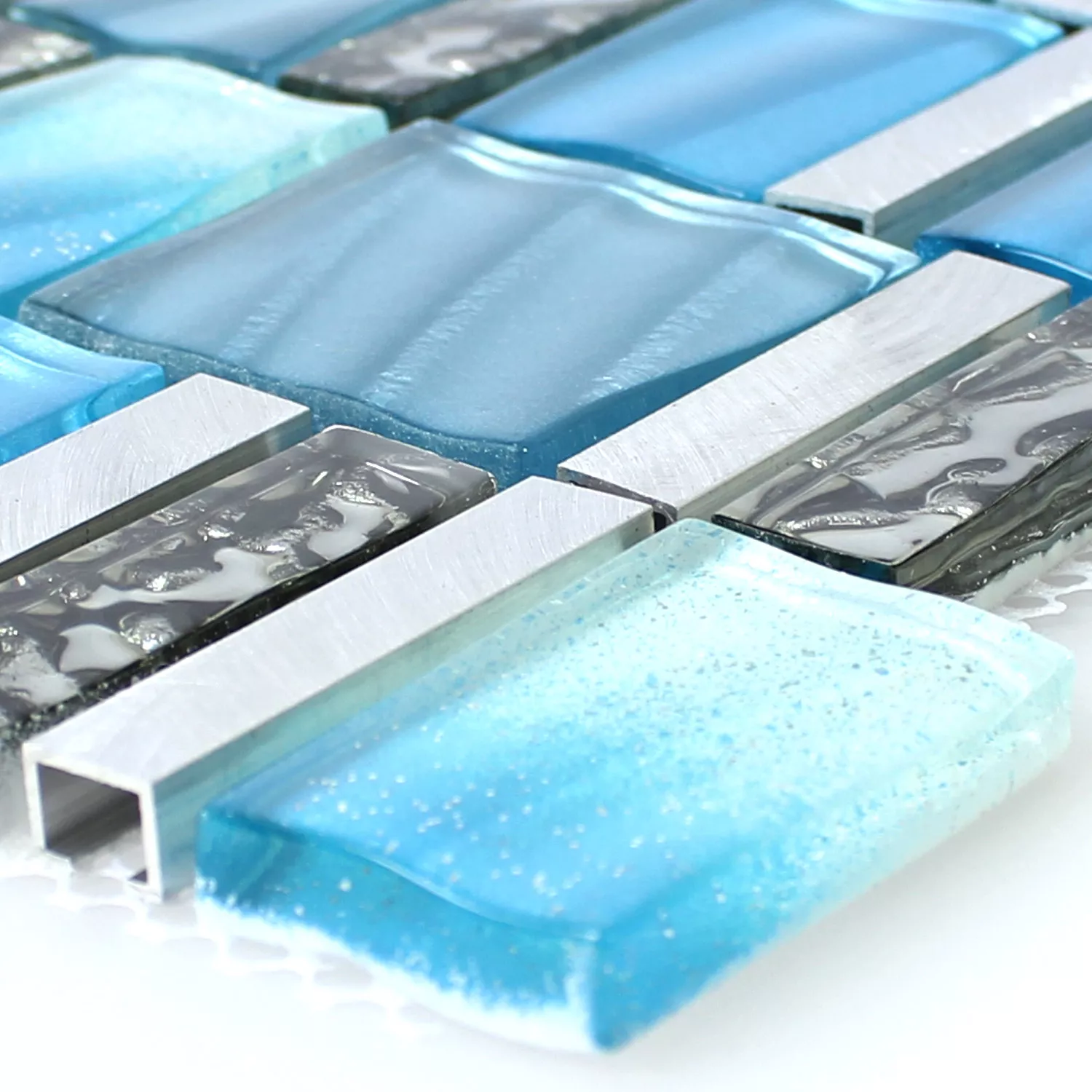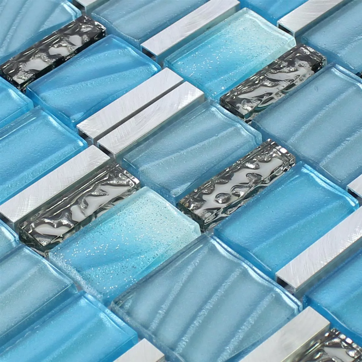 Mozaïektegel Glas Aluminium Blauw Zilver Mix