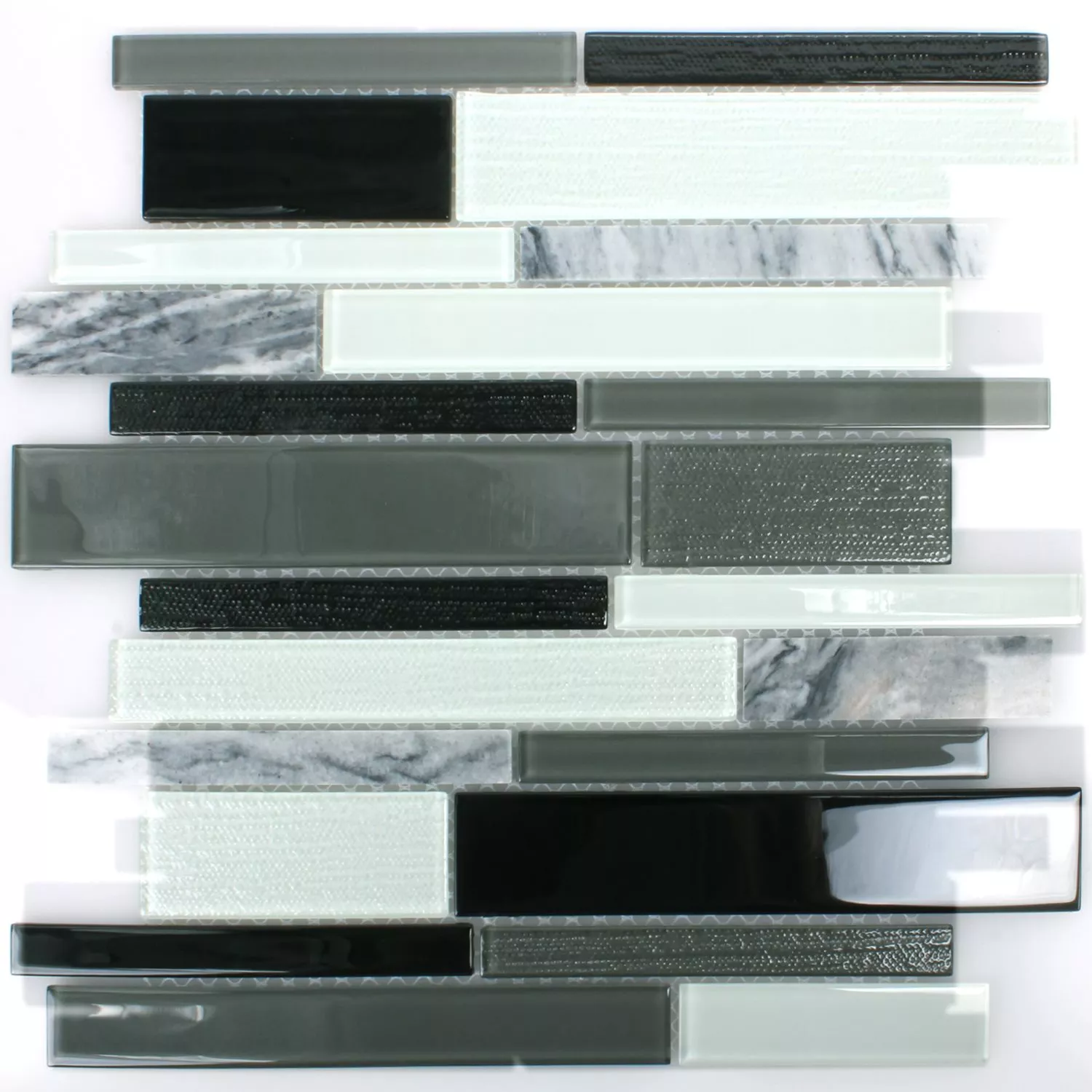 De mozaïektegels glas natuursteen Kalamos zwart en wit maken van elke ruimte waarin ze gelegd zijn een heel bijzondere oase. Deze tegels zijn als glasmozaïek voorzien van natuursteenelementen en passen perfect in de badkamer. De tegels zelf variëren in grootte en hebben een heel bijzonder oppervlaktepatroon. De structuur op de glastegels is glad en de structuur op de natuursteentegels is opgeruwd. Maar de tegels glanzen nog steeds en komen goed tot hun recht in je badkamer. Je kunt het glasmozaïek met de natuurstenen tegels in je douche leggen.