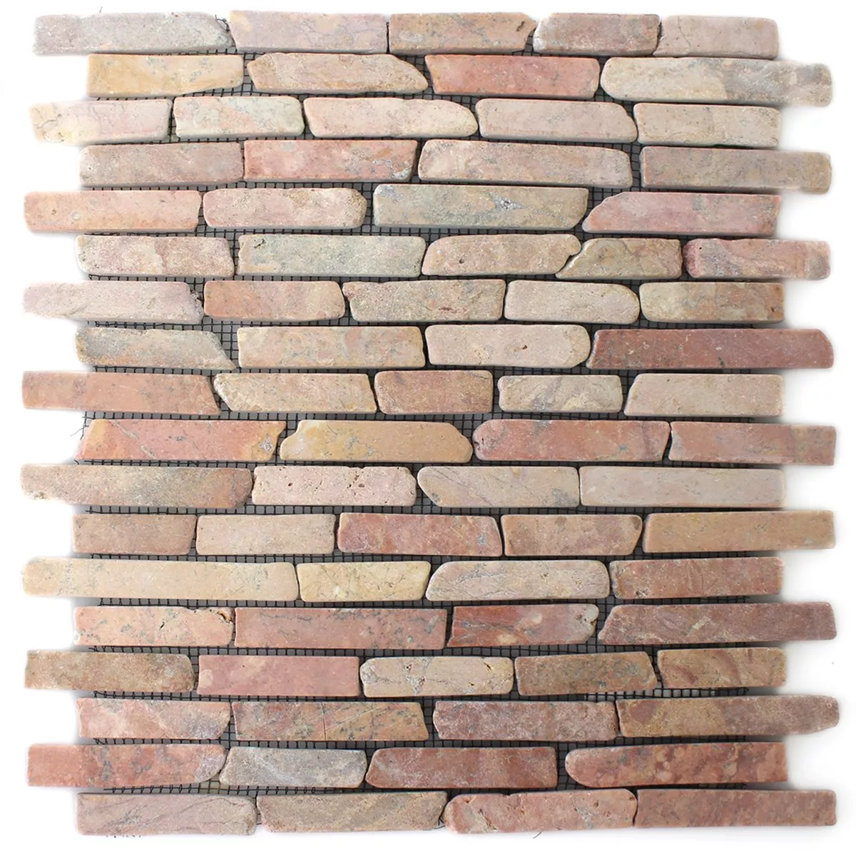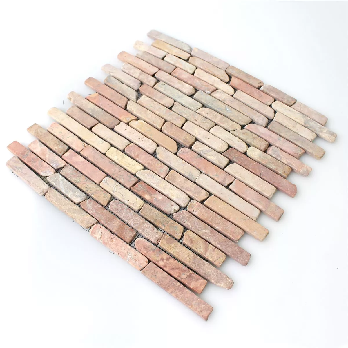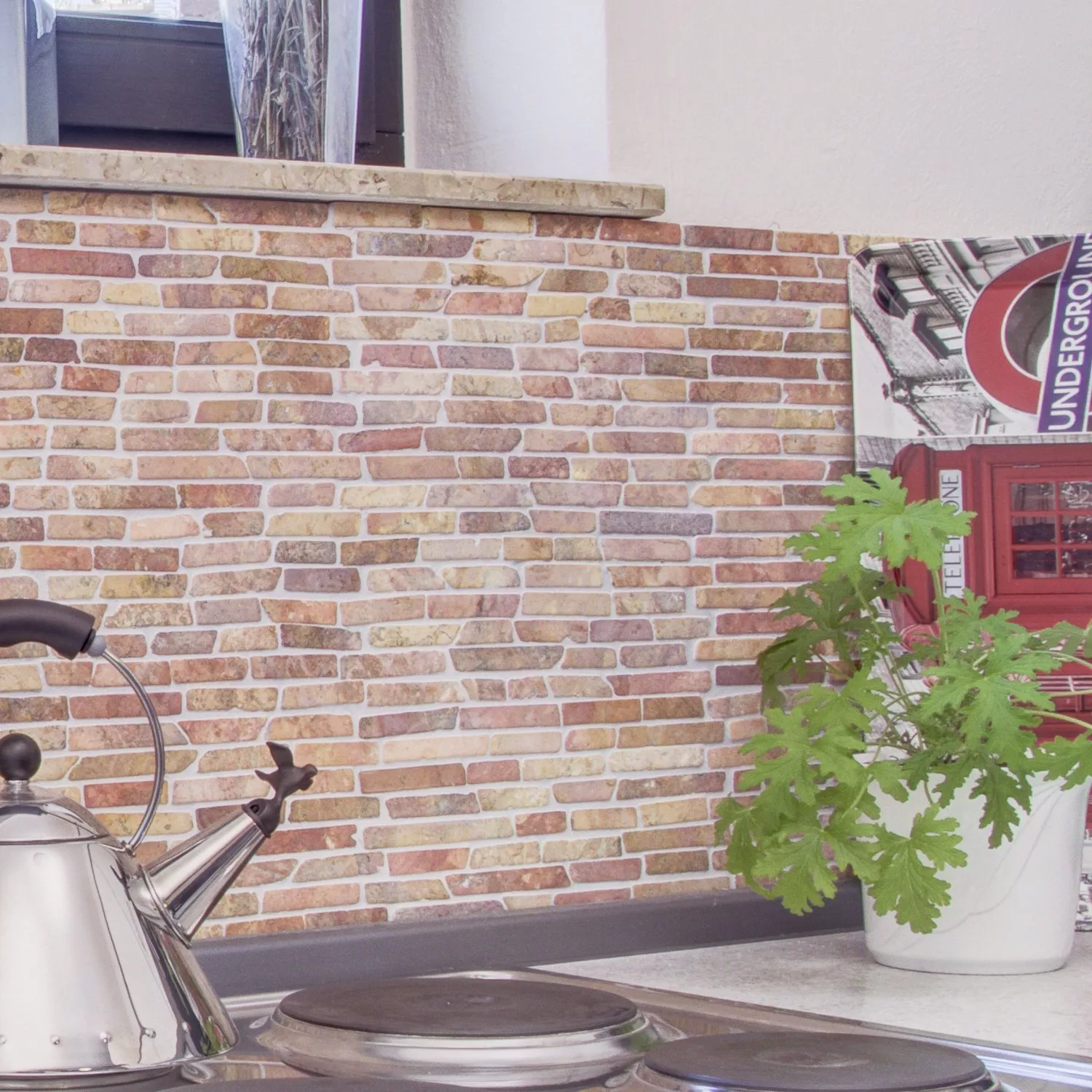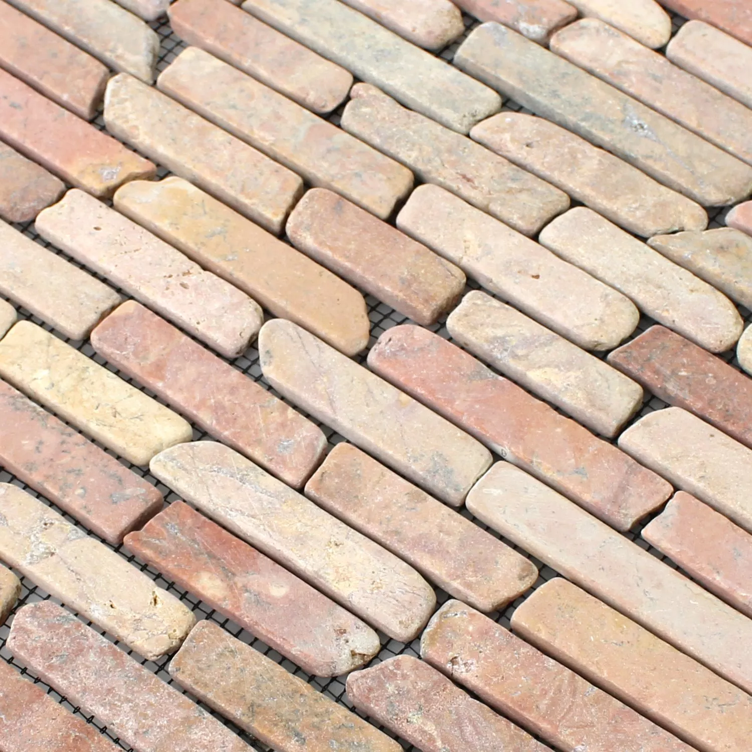 De hoogwaardige mozaïektegels uit de serie Bali Bricks zijn gemaakt van echt marmer. Daarom toveren deze natuurstenen tegels een vleugje elegantie en luxe in elke kamer van het huis. Het fijne marmermozaïek is getrommeld waardoor het oppervlak van deze mozaïektegels er heel natuurlijk uitziet. Qua kleur bieden deze natuursteentegels een visueel zeer aantrekkelijke aanblik, aangezien het edele marmermozaïek is samengesteld uit verschillende tinten. De serie Bali Bricks inspireert met zachte roodtinten en helder wit. Dit model is een mix van de Rosso Cream en Bianco mozaïektegels, waardoor de Bali Bricks tegels ook perfect te combineren zijn met de andere natuursteen tegels. Met name grotere kamers kunnen slim worden ingericht met de verschillend gekleurde tegels.