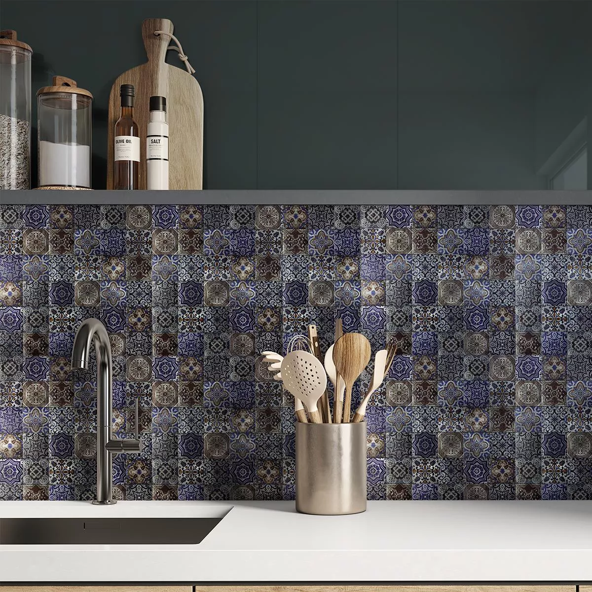 Voeg een vleugje vintage charme toe aan je muren met de Metal Retro Livorno zelfklevende mozaïektegels. Deze vierkante tegels in brons, blauw en bruin overtuigen door een stijlvolle retro-look en een mat oppervlak. Met een tegelmaat van 30,5x30,5cm en een steenmaat van 50,8x50,8mm bieden ze een ideale oplossing voor keukens, badkamers, woonkamers en andere binnenruimtes, zelfs in natte ruimtes. De zelfklevende eigenschappen maken een snelle en eenvoudige installatie mogelijk. De 4 mm dikke tegels zijn gemaakt van hoogwaardig metaal en aluminium en zijn duurzaam en gemakkelijk te hanteren. Elk pakket heeft een oppervlakte van 0,093 m² en weegt 0,46 kg. Breng tijdloze stijl en praktische functionaliteit in huis.