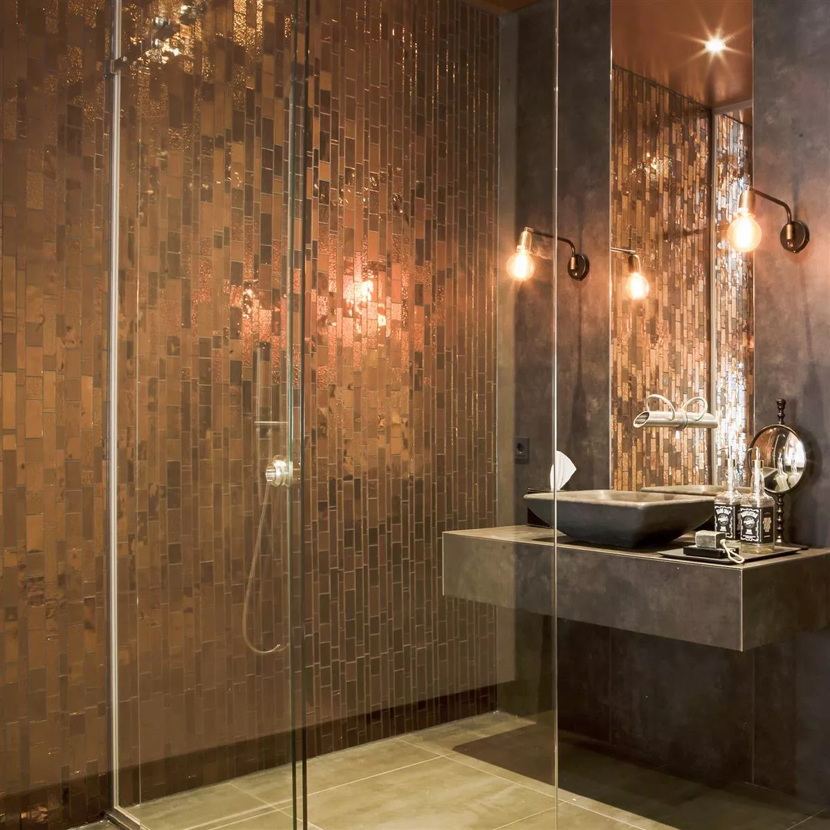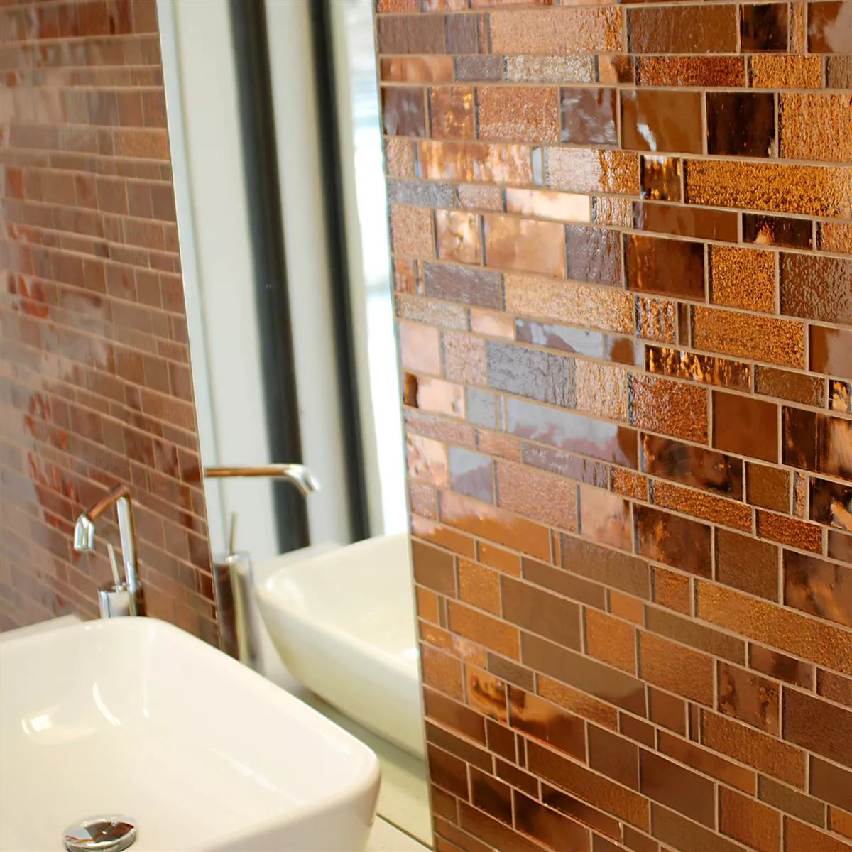Als je bij de inrichting van een woonkamer waarde hecht aan individuele stijl, hoogwaardige materialen en een trendy uitstraling, dan moet je de glasmozaïektegels Metropolis in Amber leren kennen. Deze glasmozaïek tegel is gemaakt door de bekende en gerenommeerde Italiaanse fabrikant van glaskeramiek, het bedrijf Trend-Vi. Vloeren die zijn voorzien van glasmozaïek hebben een bijzonder elegante uitstraling, maar zijn net zo onderhoudsvriendelijk en veerkrachtig als andere tegelvloeren.De mozaïektegels zijn verkrijgbaar als sticks met een dikte van 4 mm, de matmaat is 30,8x28. 8cm.