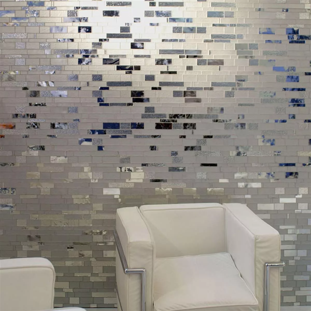 Als u bij de inrichting van een woonkamer waarde hecht aan individuele stijl, hoogwaardige materialen en een trendy uitstraling, dan moet u zeker kennis maken met de glasmozaïek Metropolis in Diamond. Deze glasmozaïek tegel is gemaakt door de bekende en gerenommeerde Italiaanse fabrikant van glaskeramiek, het bedrijf Trend-Vi. Vloeren die zijn voorzien van glasmozaïek hebben een bijzonder elegante uitstraling, maar zijn net zo onderhoudsvriendelijk en veerkrachtig als andere tegelvloeren.De mozaïektegels zijn verkrijgbaar als sticks met een dikte van 4 mm, de matmaat is 30,8x28. 8cm.