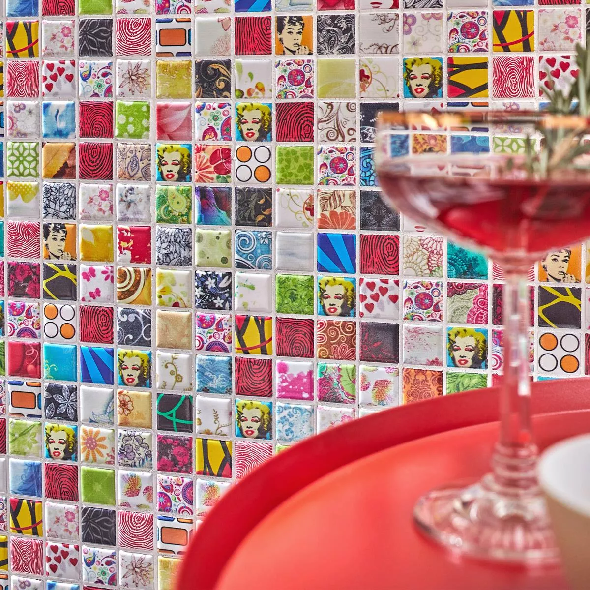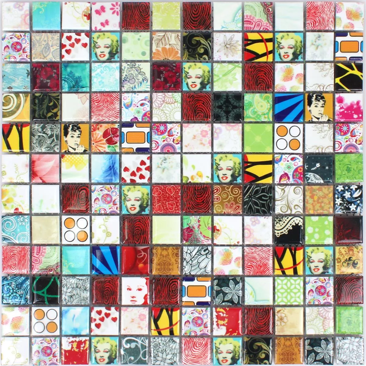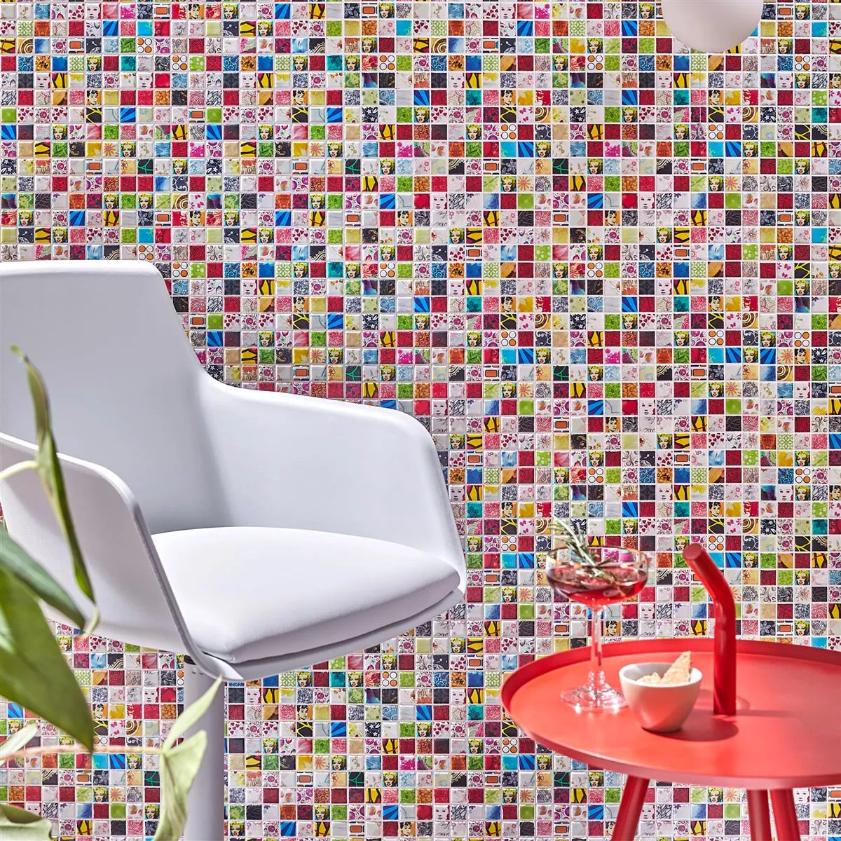 Mit einem Gewicht von nur 0,9 kg pro Stück sind die Fliesen einfach zu verlegen und zu handhaben. Die bunte, glänzende Oberfläche bringt lebendige Farben und einen charmanten Retro-Flair in Ihre Räume, während die pflegeleichten Eigenschaften für eine langanhaltende Freude an Ihrem Design sorgen.