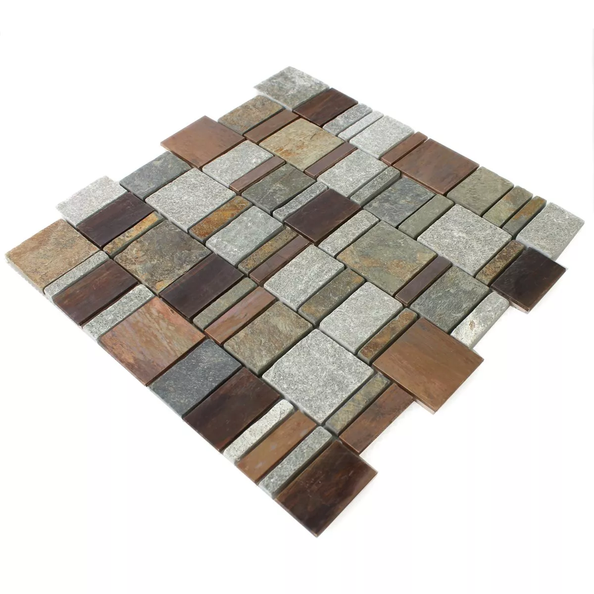 Natuursteen Kwartsiet Metaal Aluminium Mozaïektegel Topsail Koperen Bruin