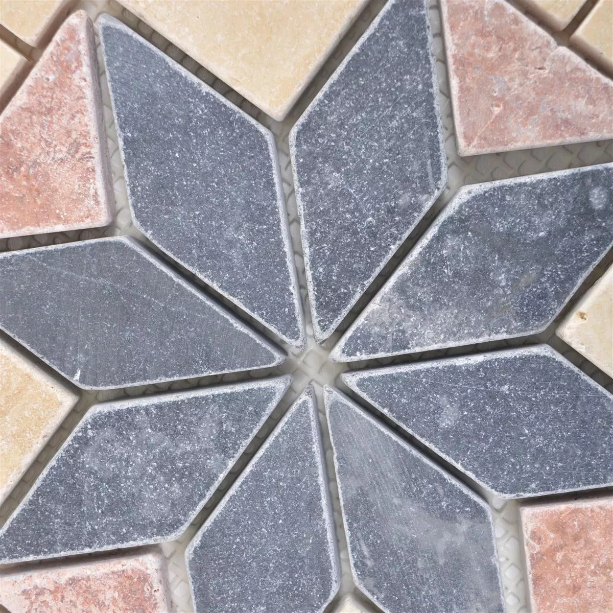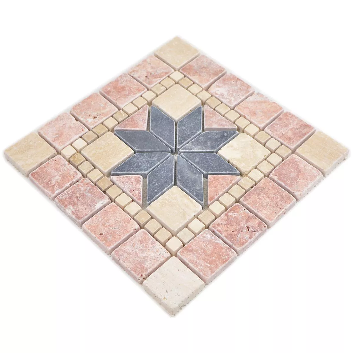 De natuursteentegels Rosone Tarbora in Colormix Beige Red Black zijn een mooie blikvanger. De mix van kleuren is erg opvallend, de tegels stralen letterlijk tegen je aan zonder al te speels over te komen. Het beige en het delicate rood zien er erg harmonieus uit met elkaar. Het zwart verschijnt in de vorm van een mozaïekbloem in het midden van de tegelmat. Het is opvallend, maar toch passend.
