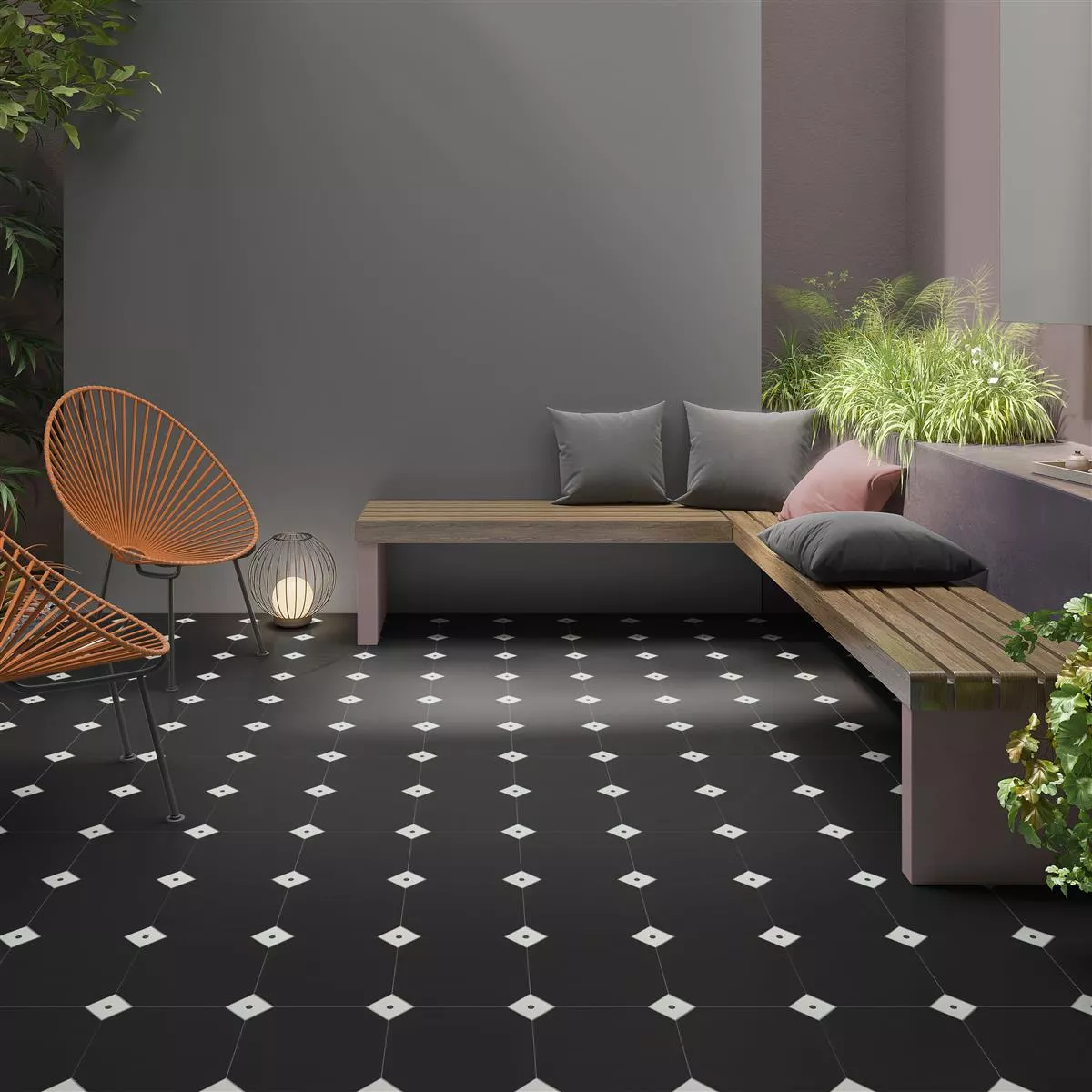 Porseleinen steengoed tegels Genexia Uni Black Octagon 20x20cm - klassieke elegantie in zwart
