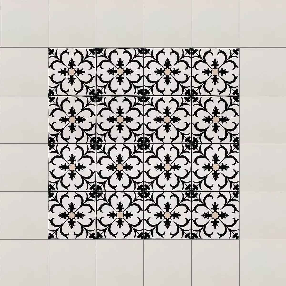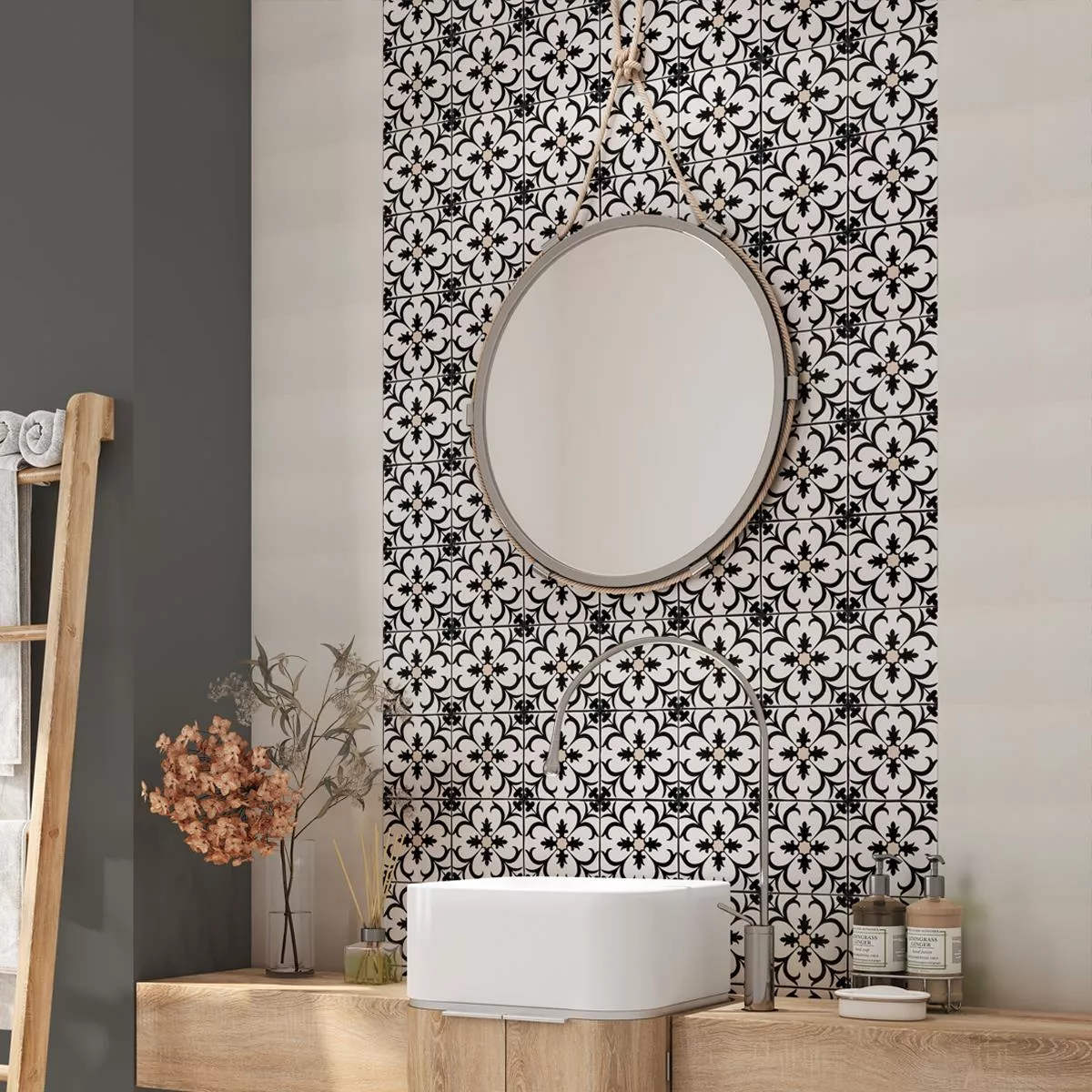 De basis Ornamenti tegels, in het wit, geven elke ruimte een strakke en luchtige sfeer.