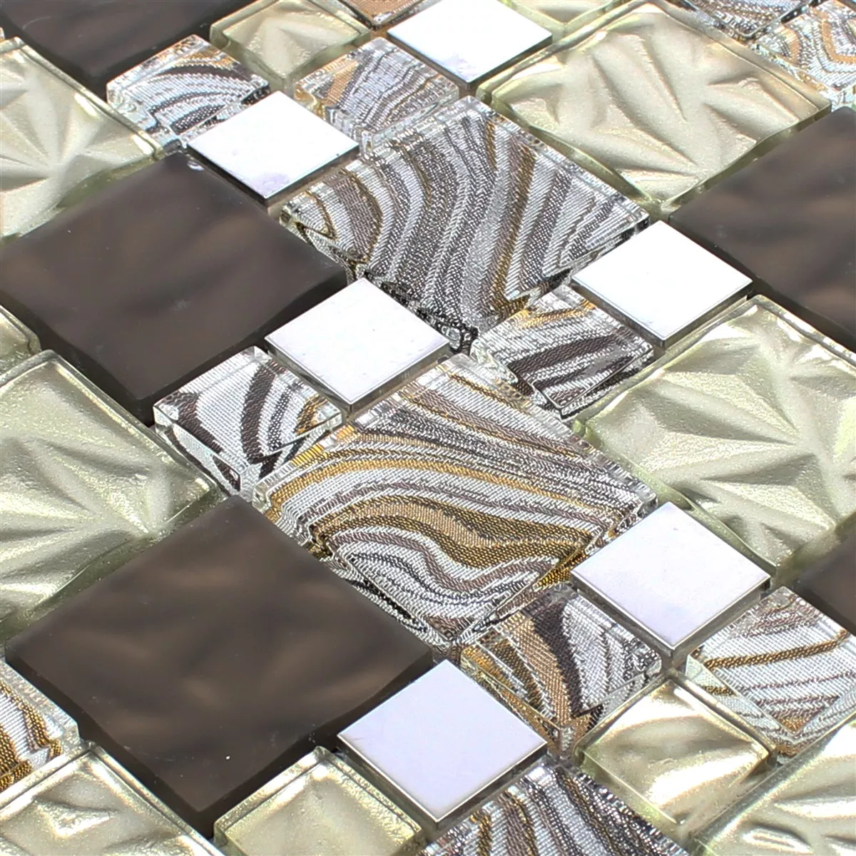 Sample Glas Metaal Roestvrij Staal Mozaïektegel Zadar Beige Bruin