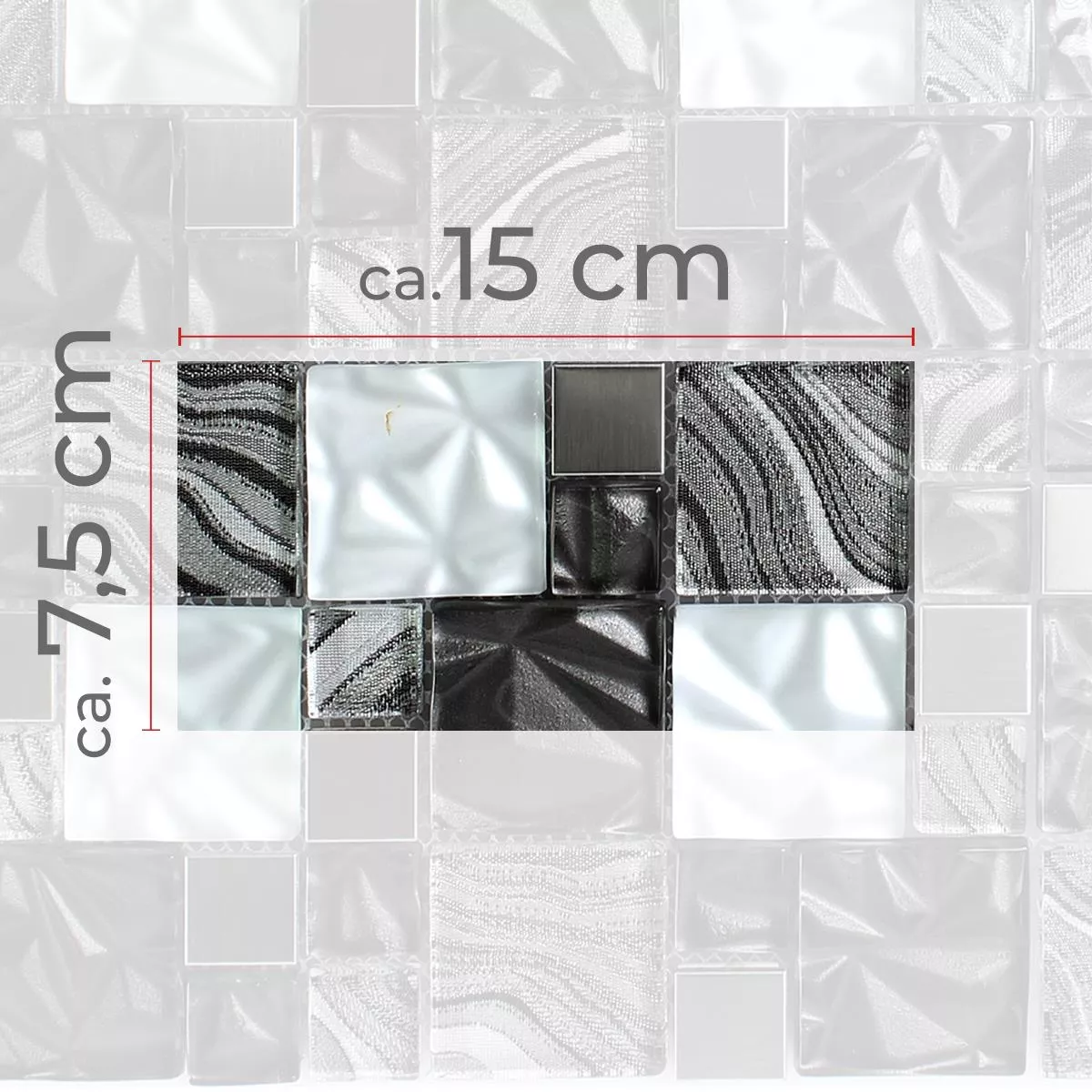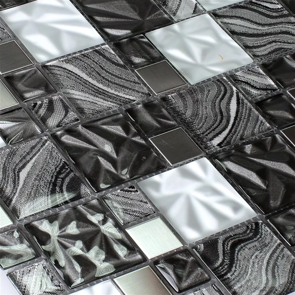 Sample Glas Metaal Roestvrij Staal Mozaïektegel Zadar Grijs Zwart