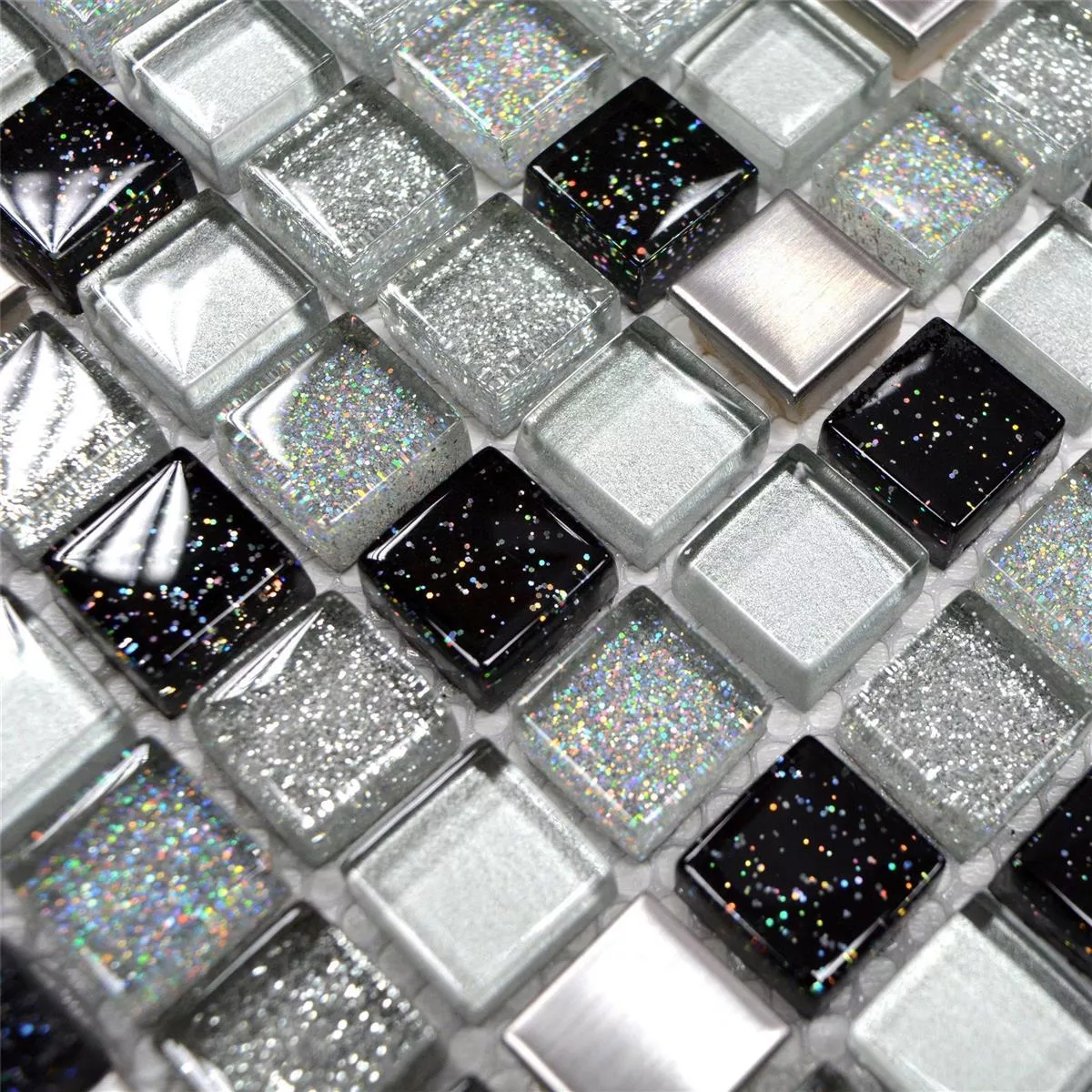 Sample Glas Roestvrij Staal Metaal Mozaïektegels Zilver Zwart