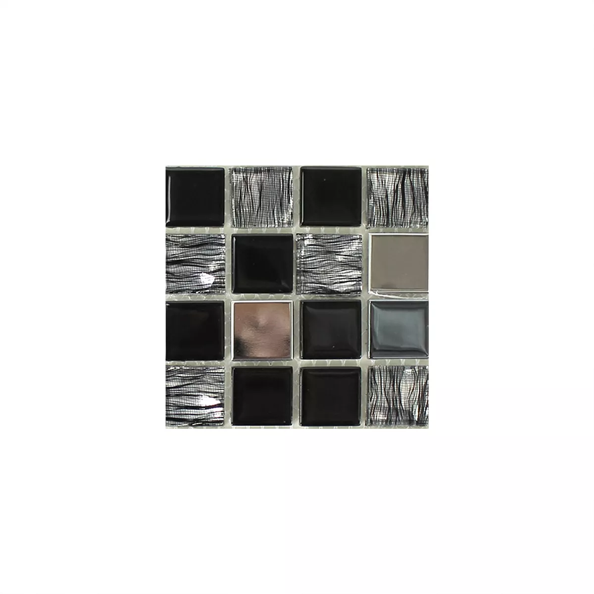 Sample Glas Roestvrij Staal Mozaïektegel Zelfklevende Zwart Zilver