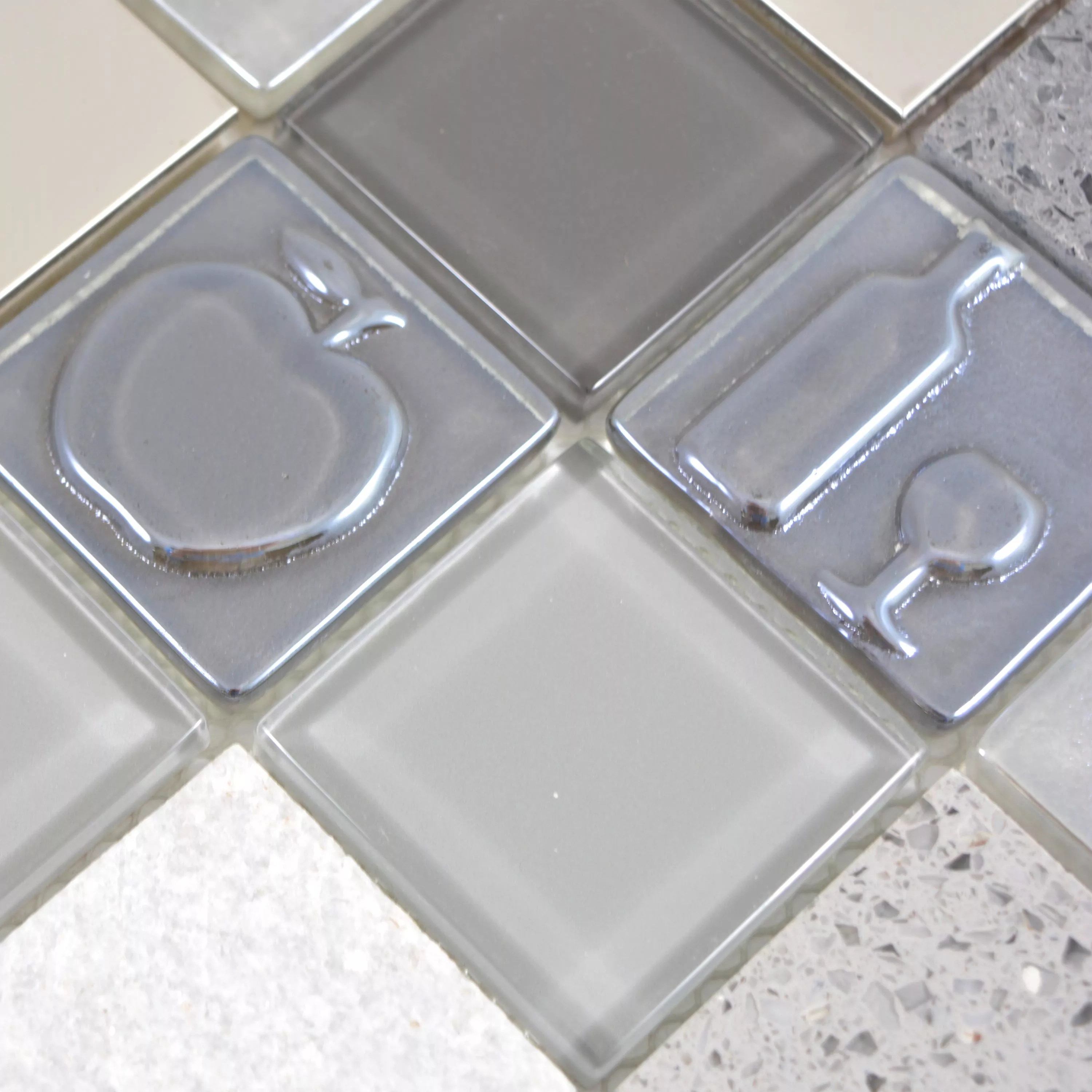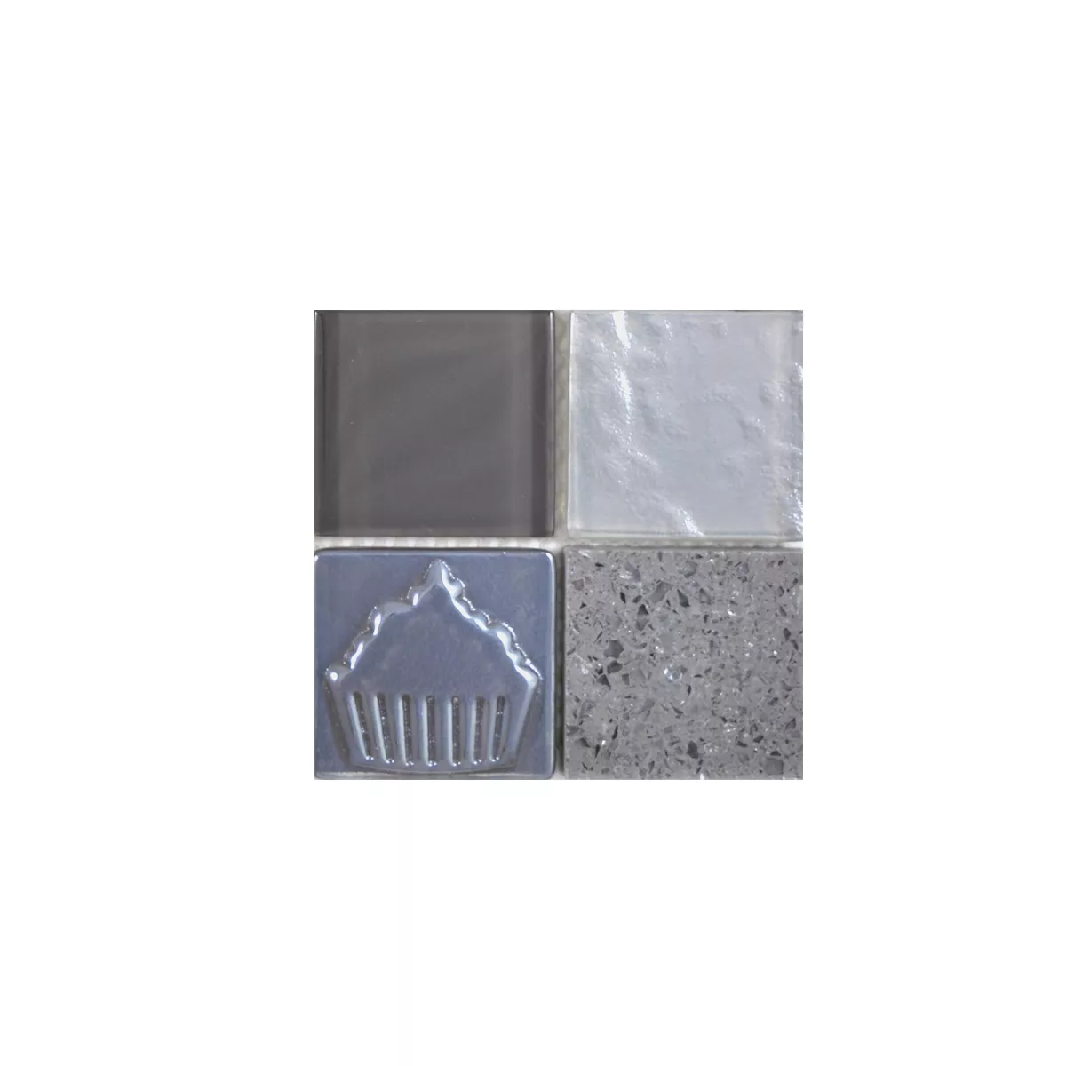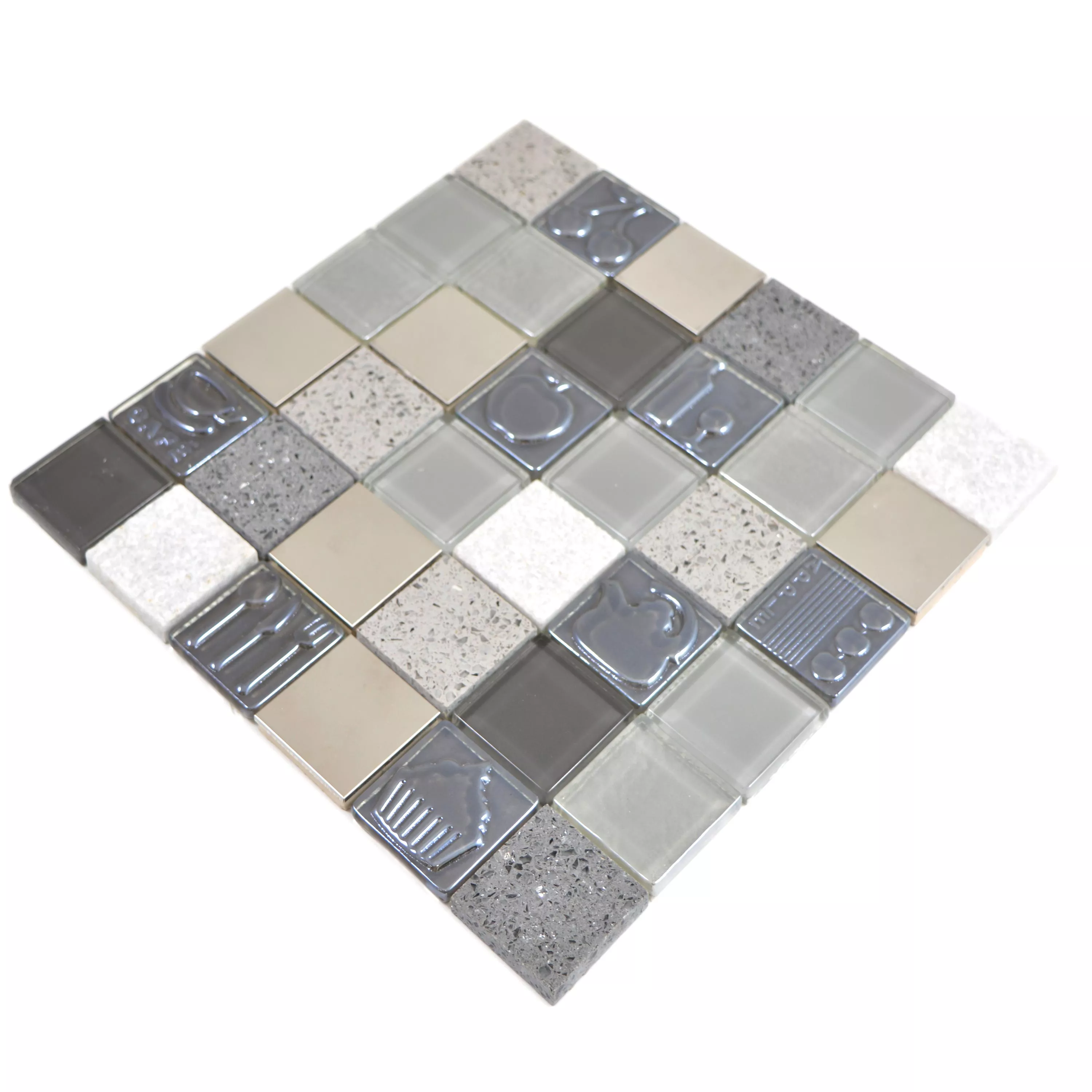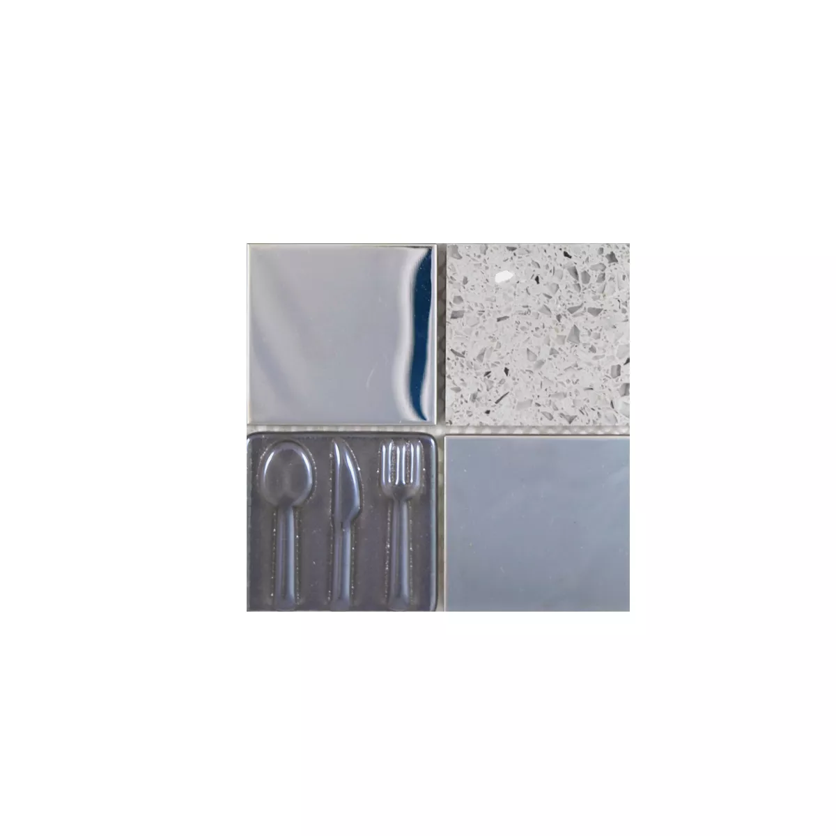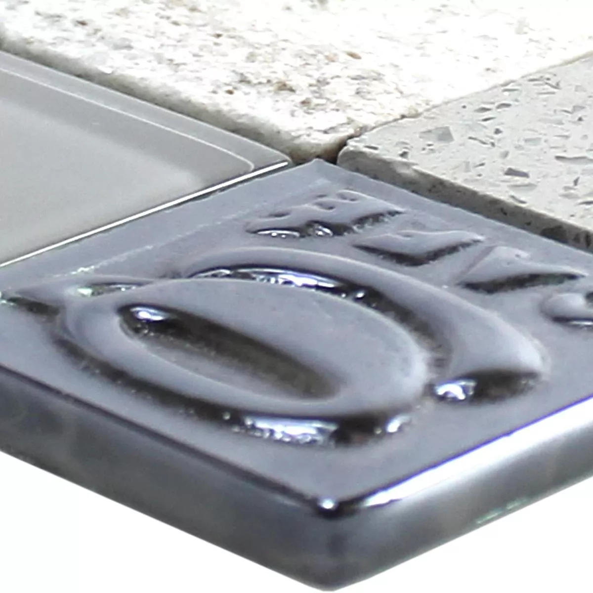 Sample Glas Roestvrij Staal Natuursteen Mozaïektegel Emporia Grijs Zilver
