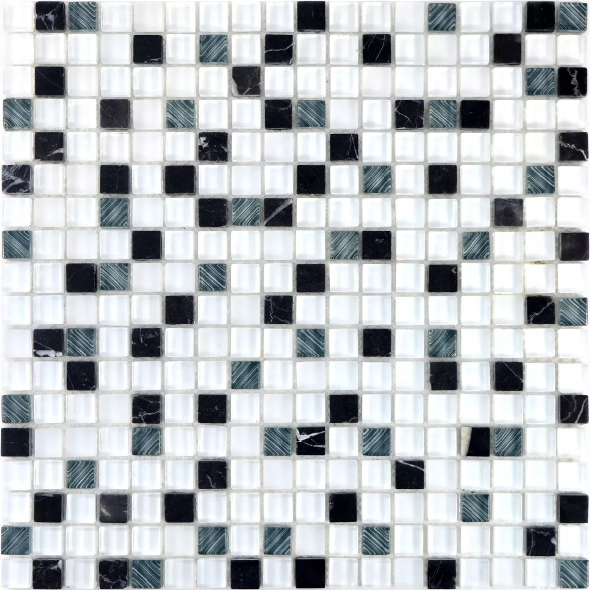 Sample Glasmozaïek Natursteentegels Nexus Super Wit Zwart