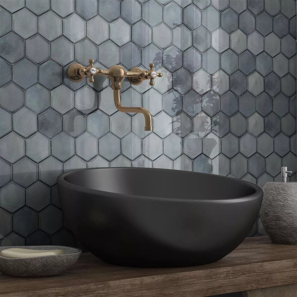 Sample Glasmozaïek Tegels Andalucia Hexagon Zwart