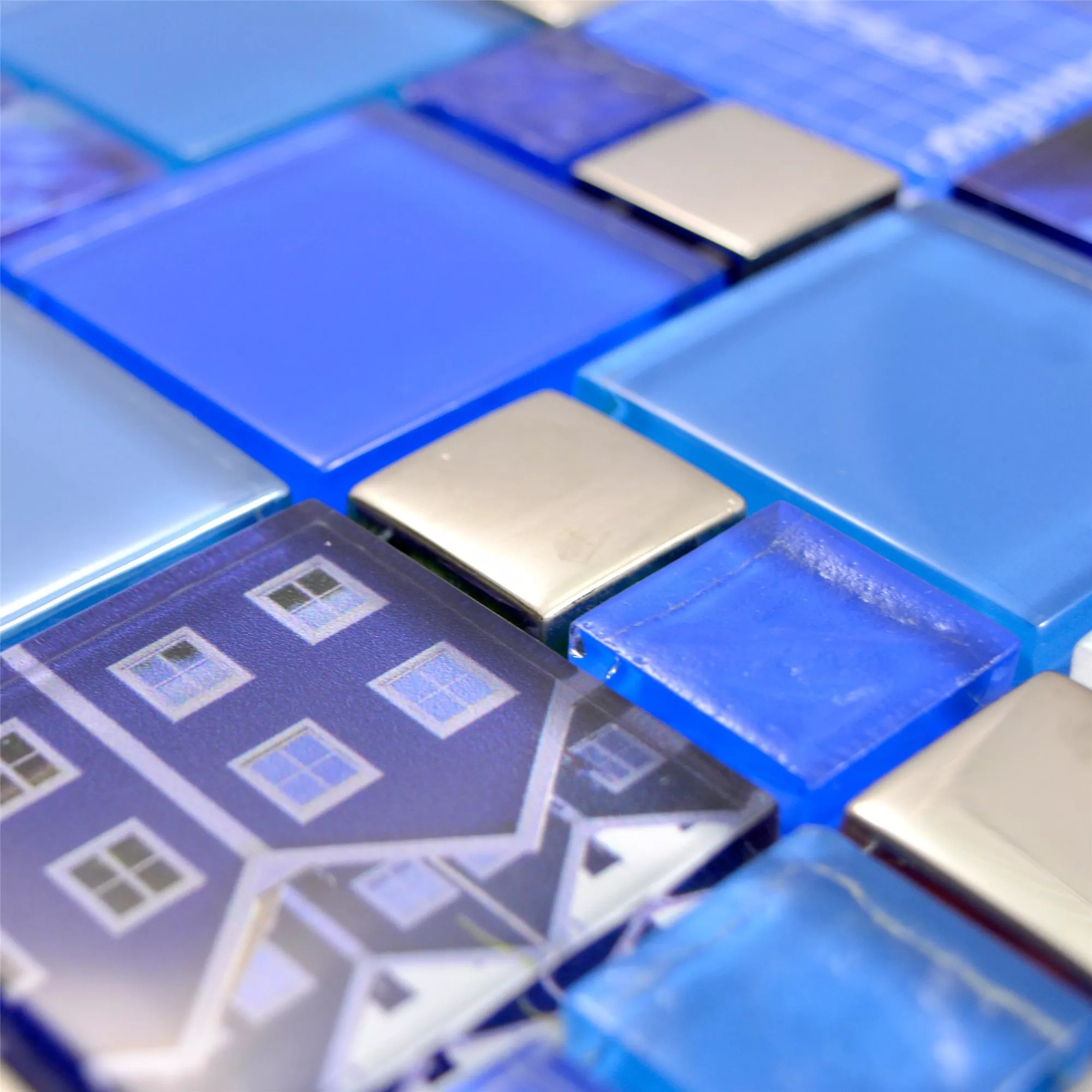 Sample Glasmozaïek Tegels Nemesis Blauw Zilver