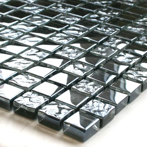 Sample Glasmozaïek Tegels Zwart Metaal Trommelde