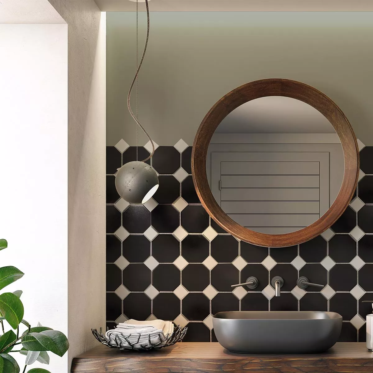 Sample Keramiek Mozaïektegel Octagon Fürstenberg Zwart Wit