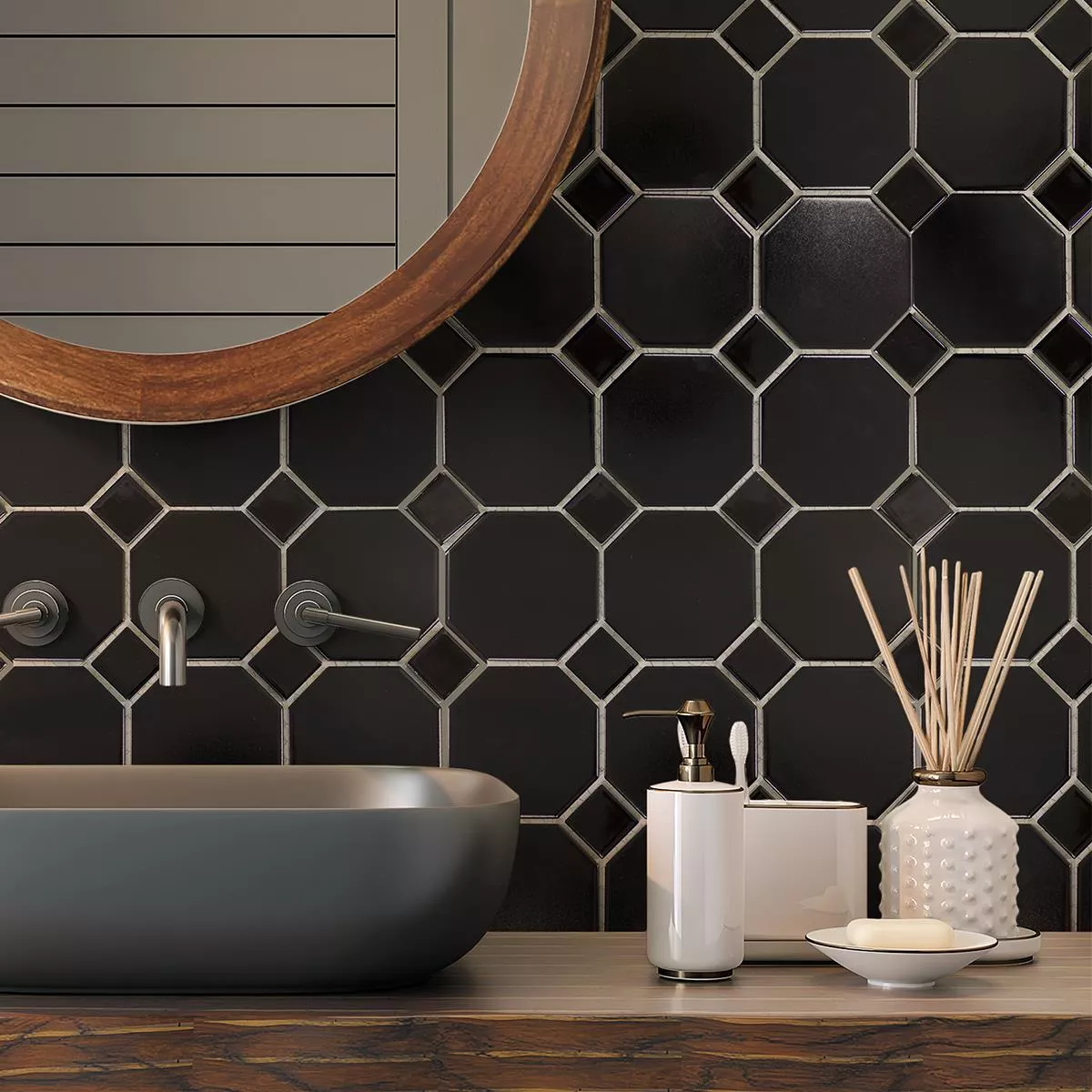 Sample Keramiek Mozaïektegel Octagon Fürstenberg Zwart