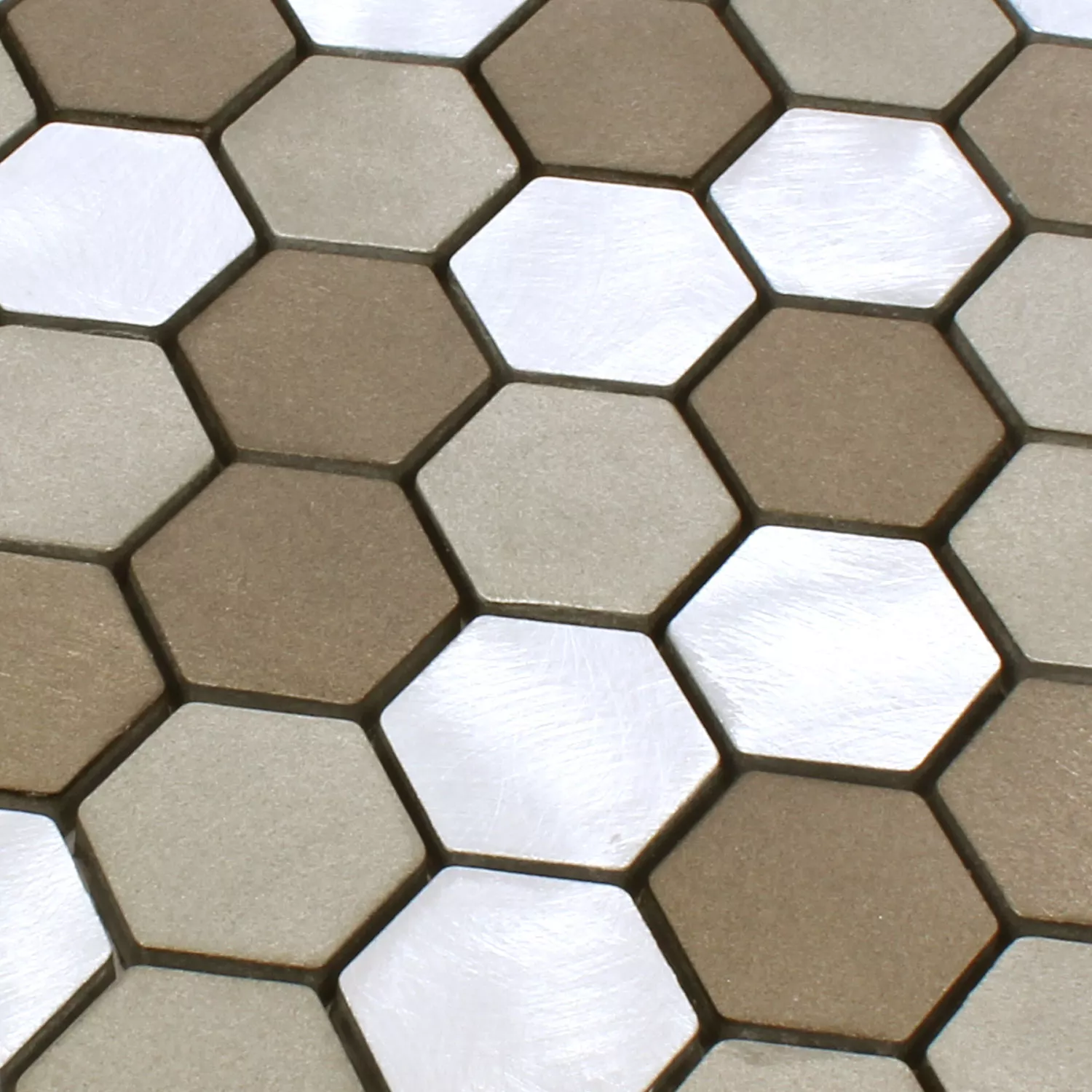 Sample Mozaïektegel Aluminium Apache Hexagon Bruin Zilver