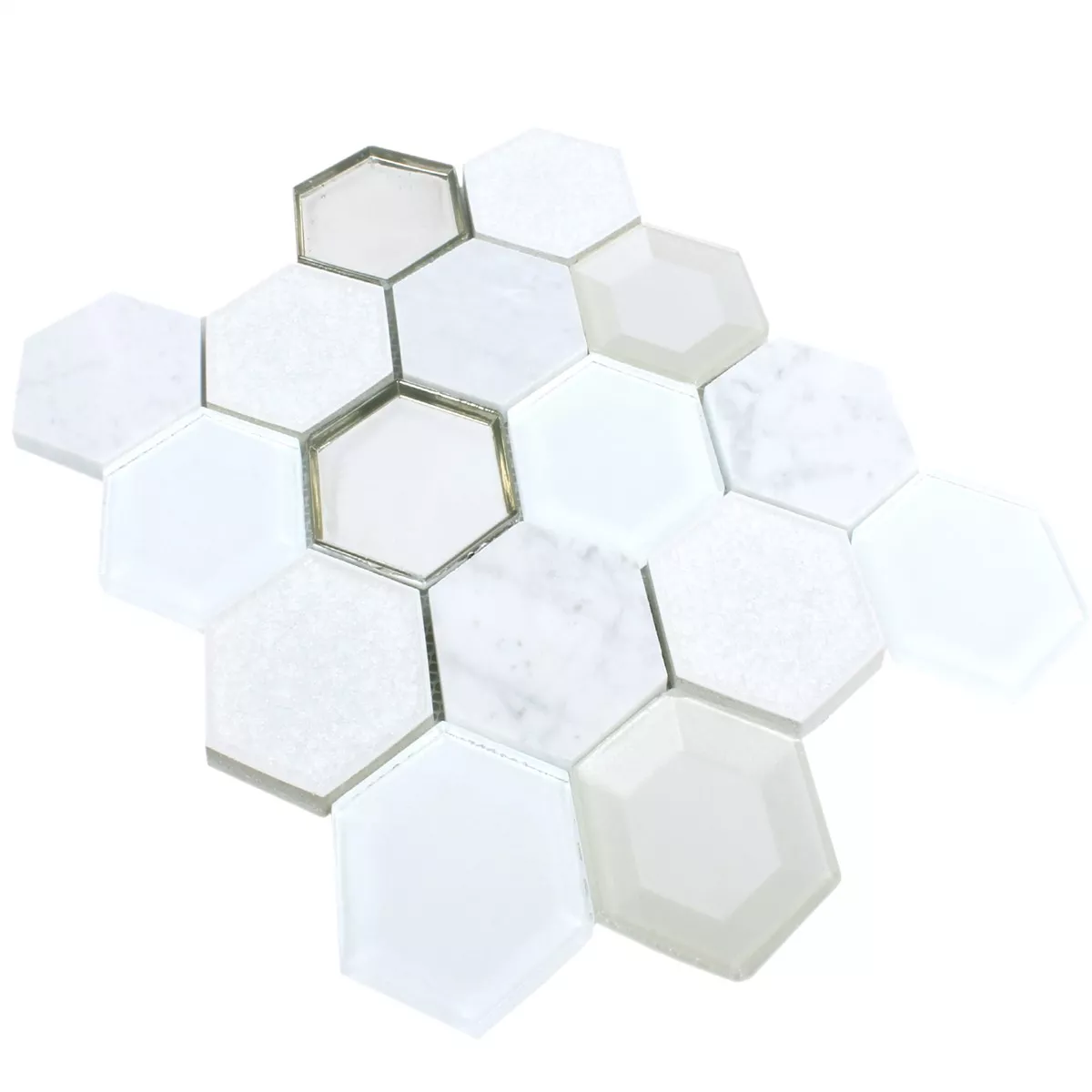 Sample Mozaïektegel Concrete Glas Natuursteen 3D Wit