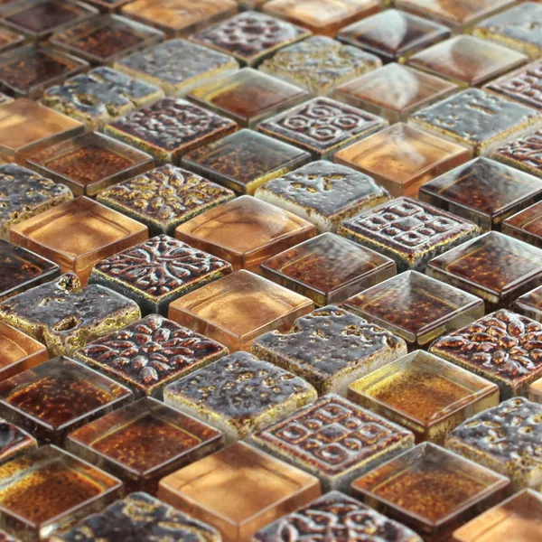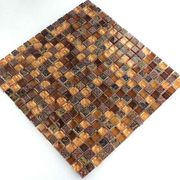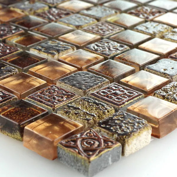 Sample Mozaïektegel Escimo Glas Natuursteen Bruin Goud