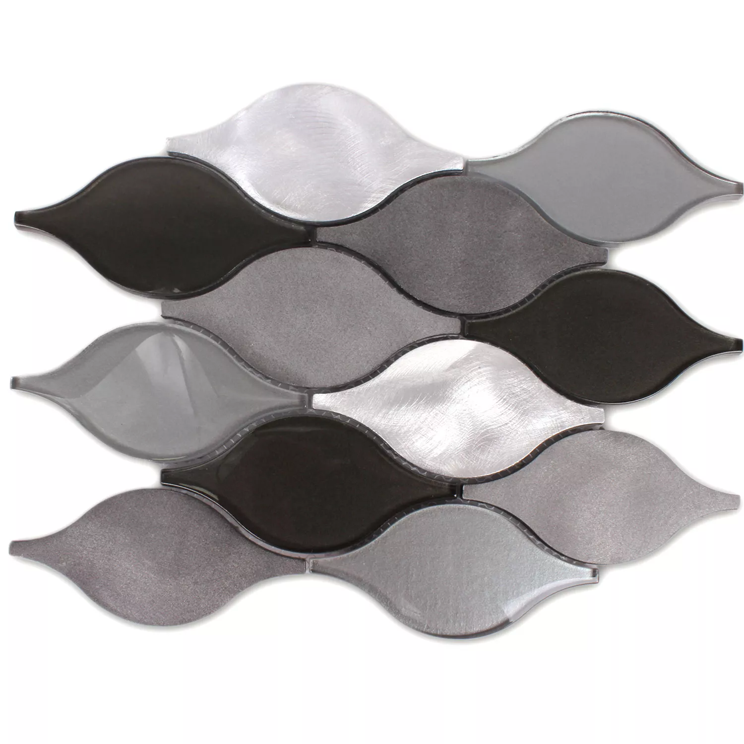 Sample Mozaïektegel Glas Aluminium Eliza Zwart Zilver