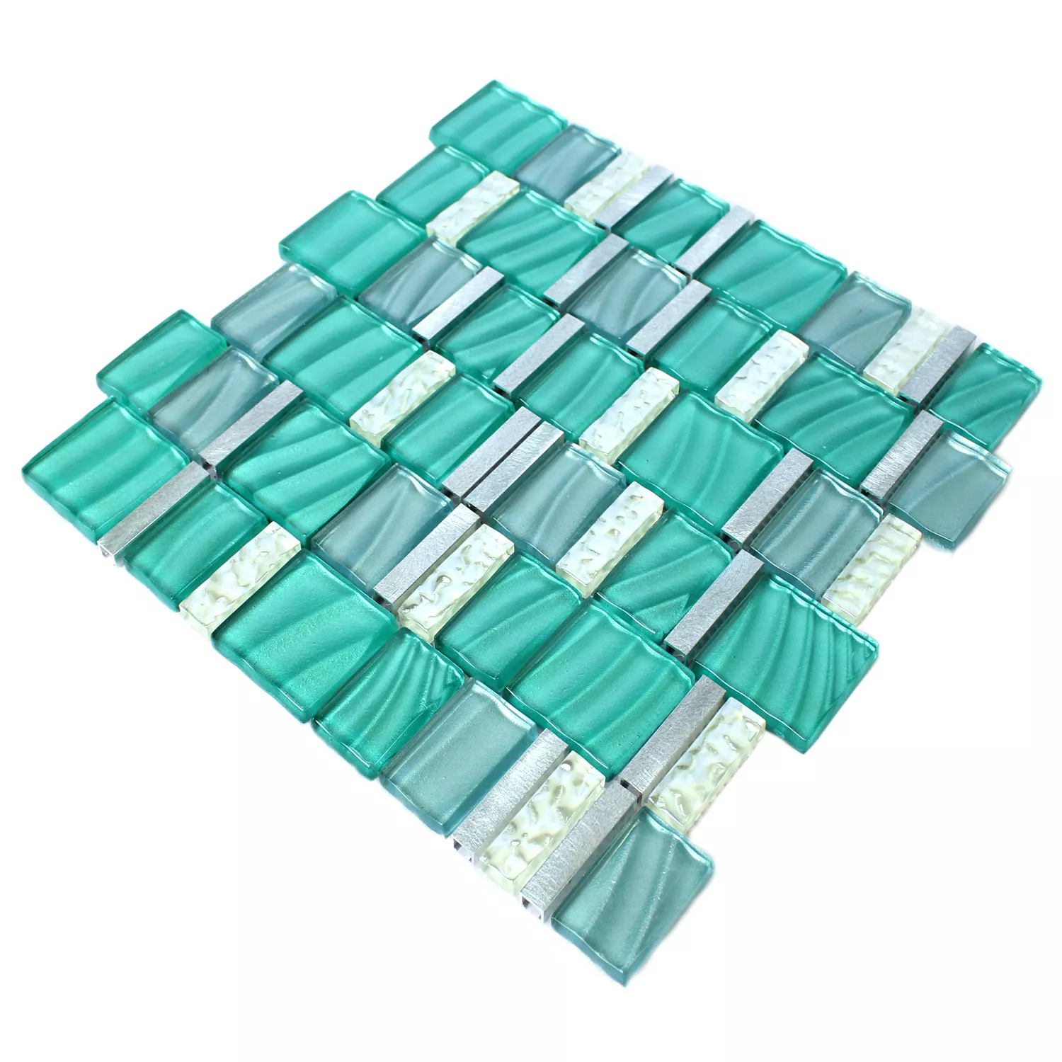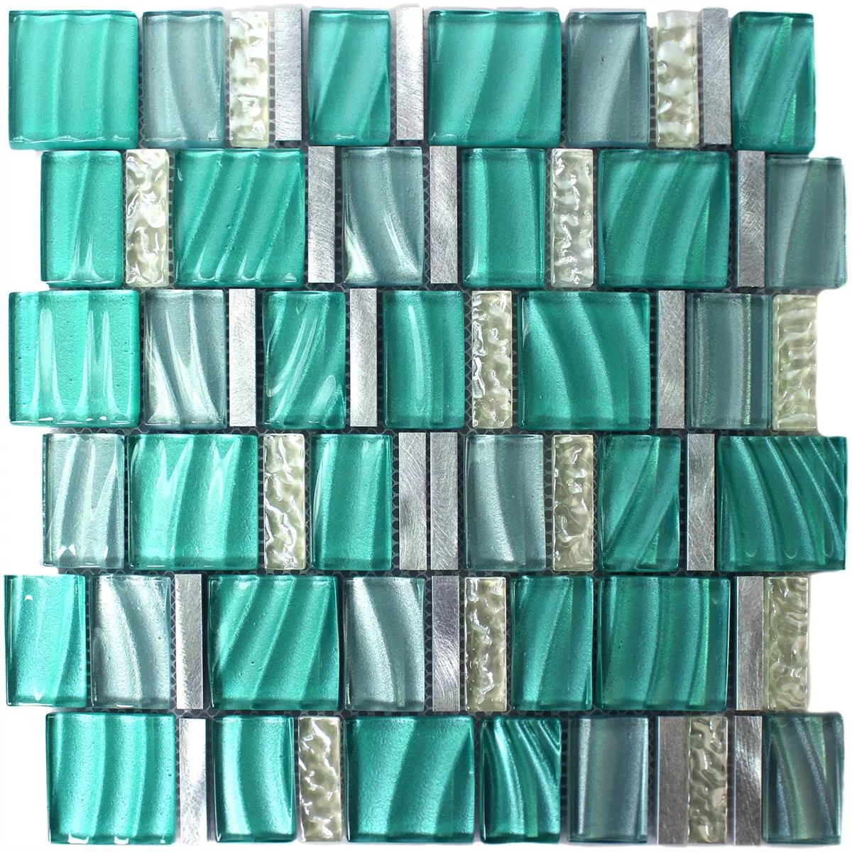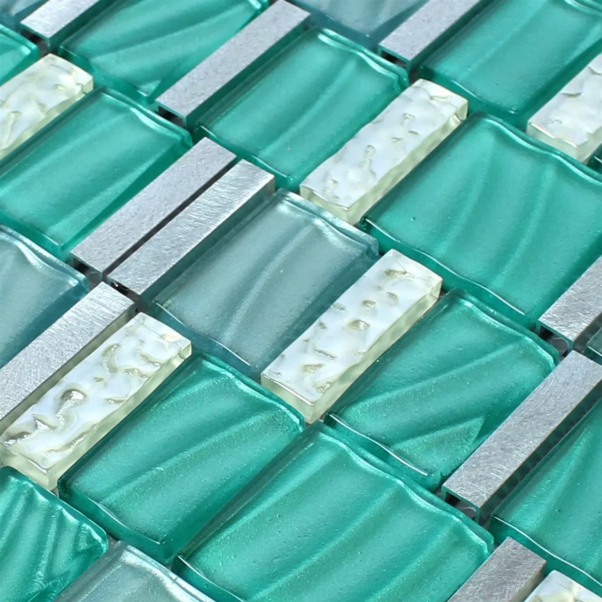 Sample Mozaïektegel Glas Aluminium Groen Zilver Mix