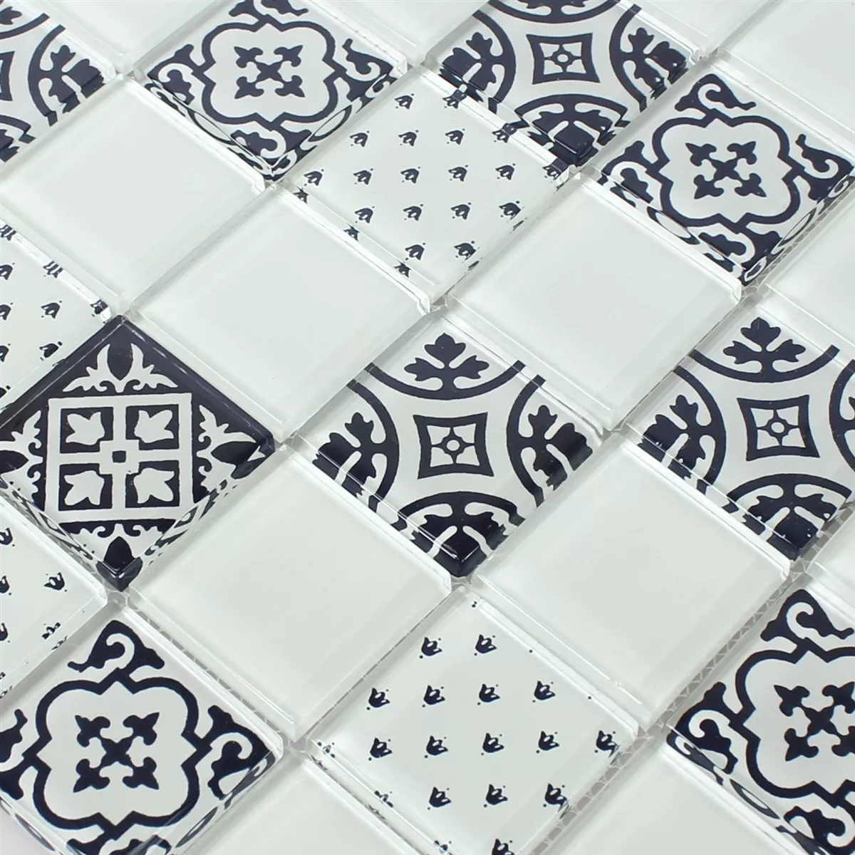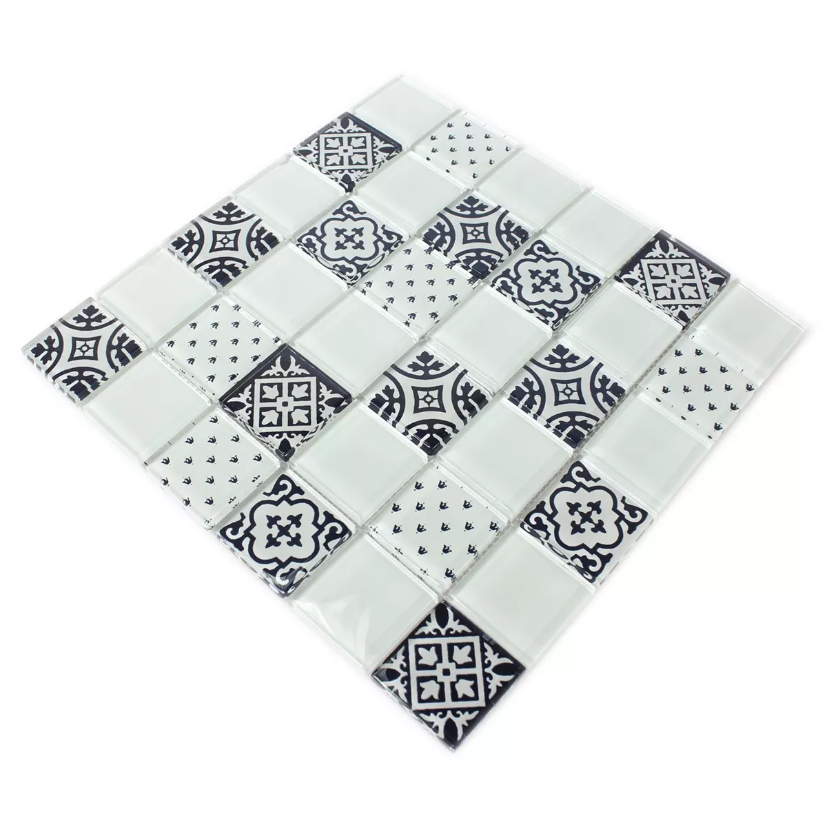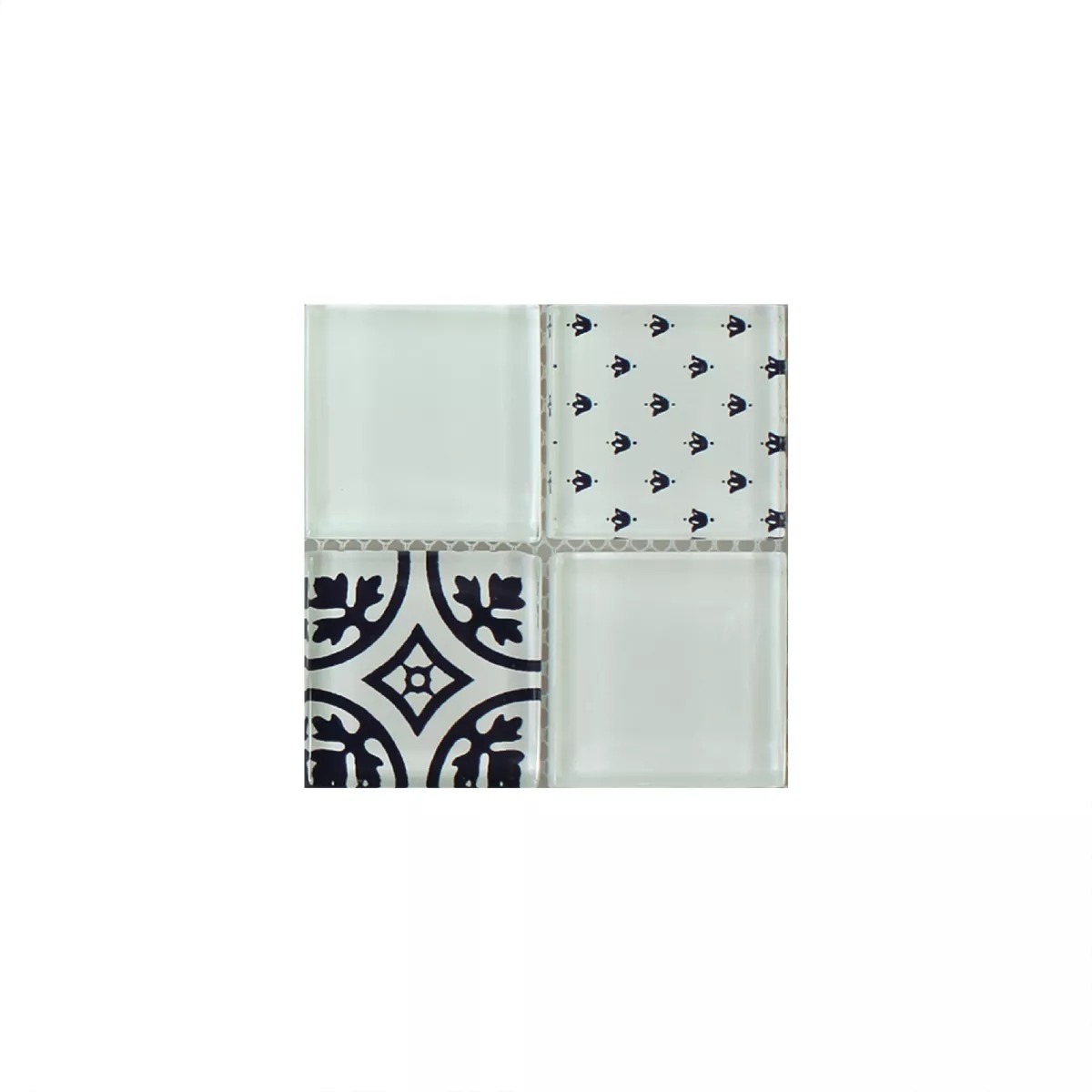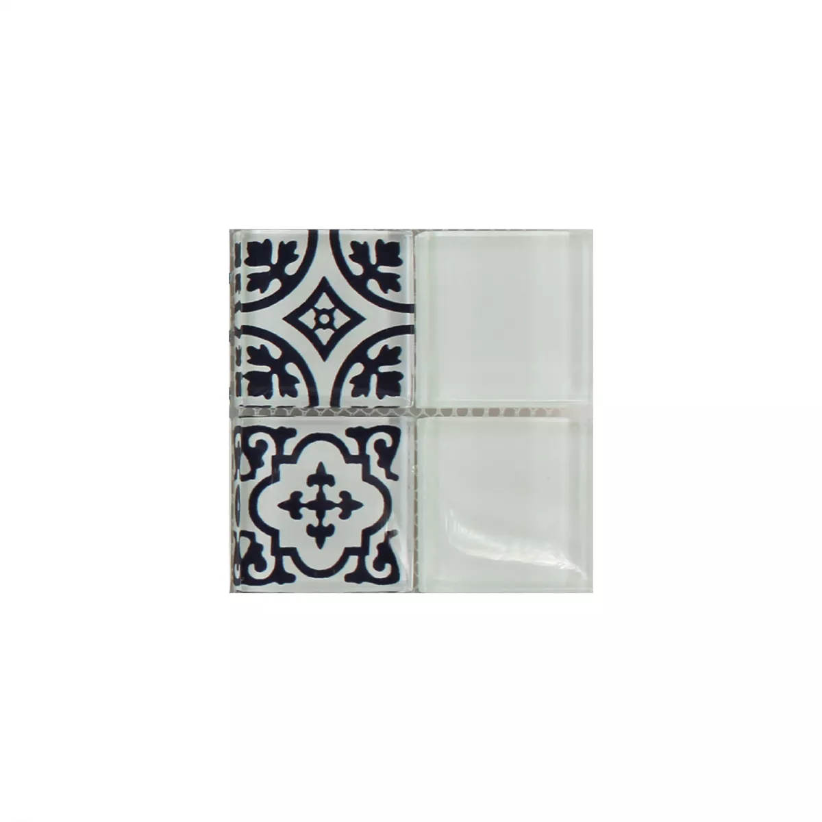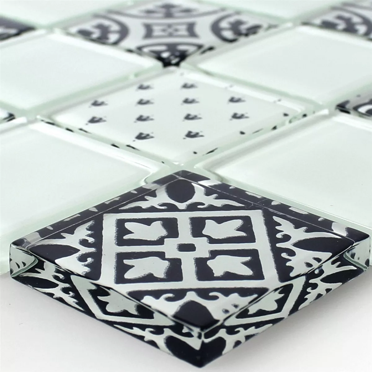 Sample Mozaïektegel Glas Barock Ornament Wit